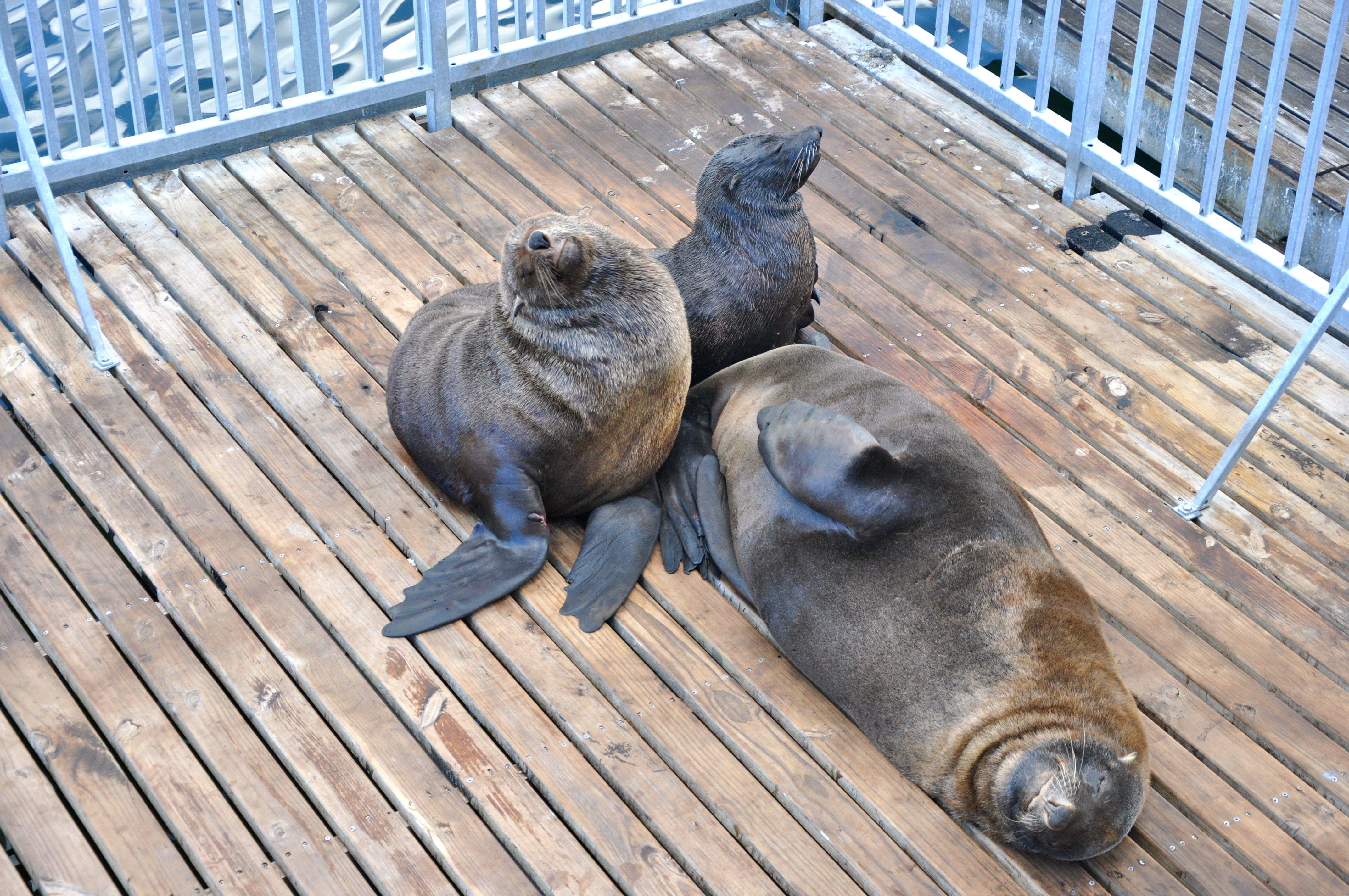 A presença de focas e pássaros marinhos é comum por aí, pois a reforma do Waterfront não eliminou as atividades do antigo porto, portanto os barcos pesqueiros chegam a todo momento e os bichos fazem a festa.