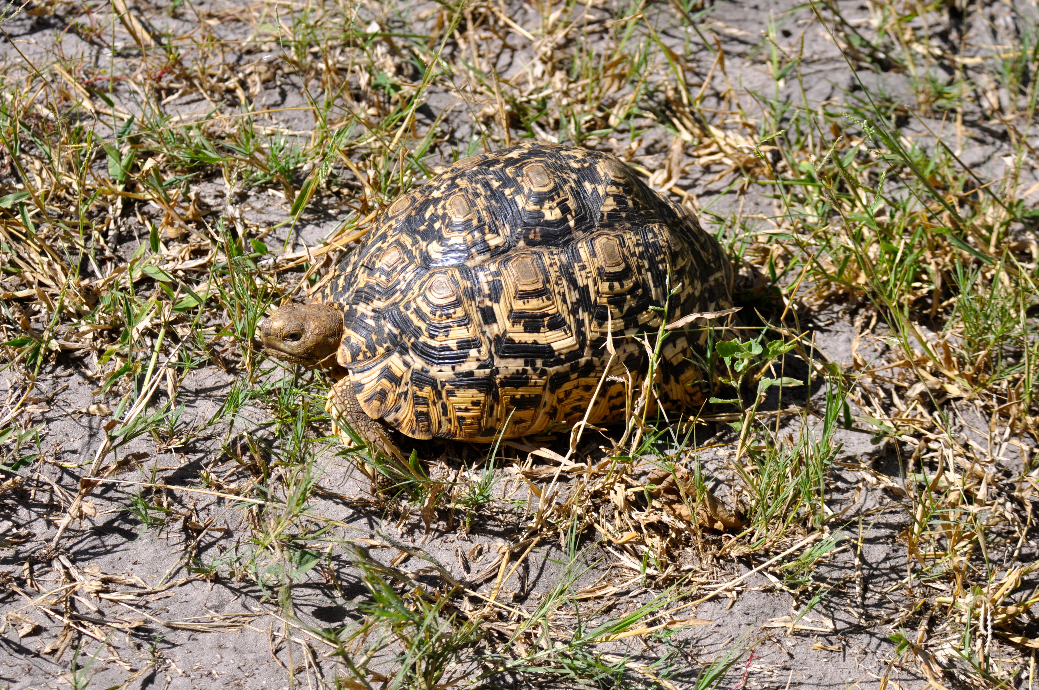Vimos lagartos na beira do rio, alguns antílopes, girafas, um cágado com couraça colorida, imitando a pelagem de um leopardo, chama-se tartaruga-leopardo, babuínos e pássaros.