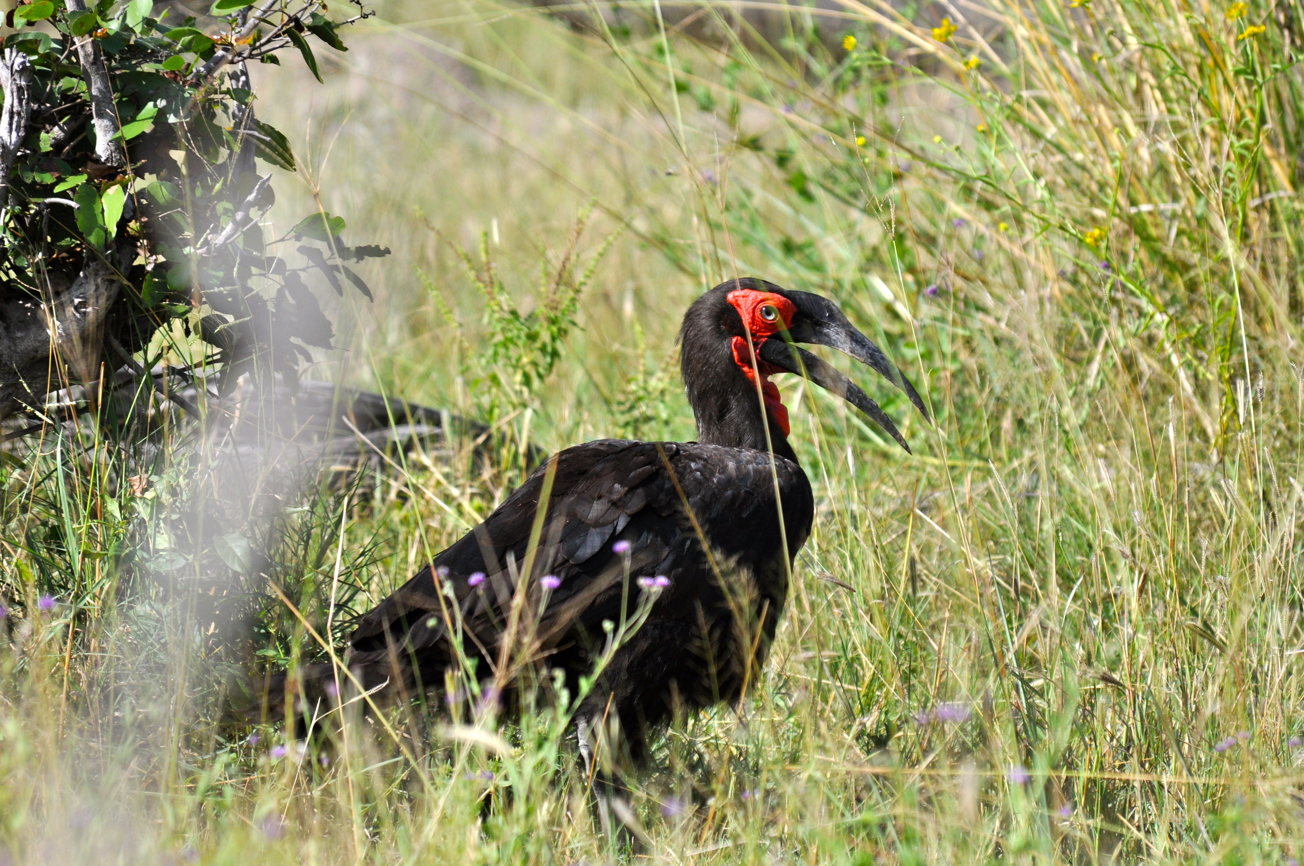 Saímos para o safari da tarde às 16h. Logo na saída encontramos um grupo de Calau Terrestres, aves grandes, da família dos calaus, que possuem um papo vermelho, que comem serpentes e roedores.