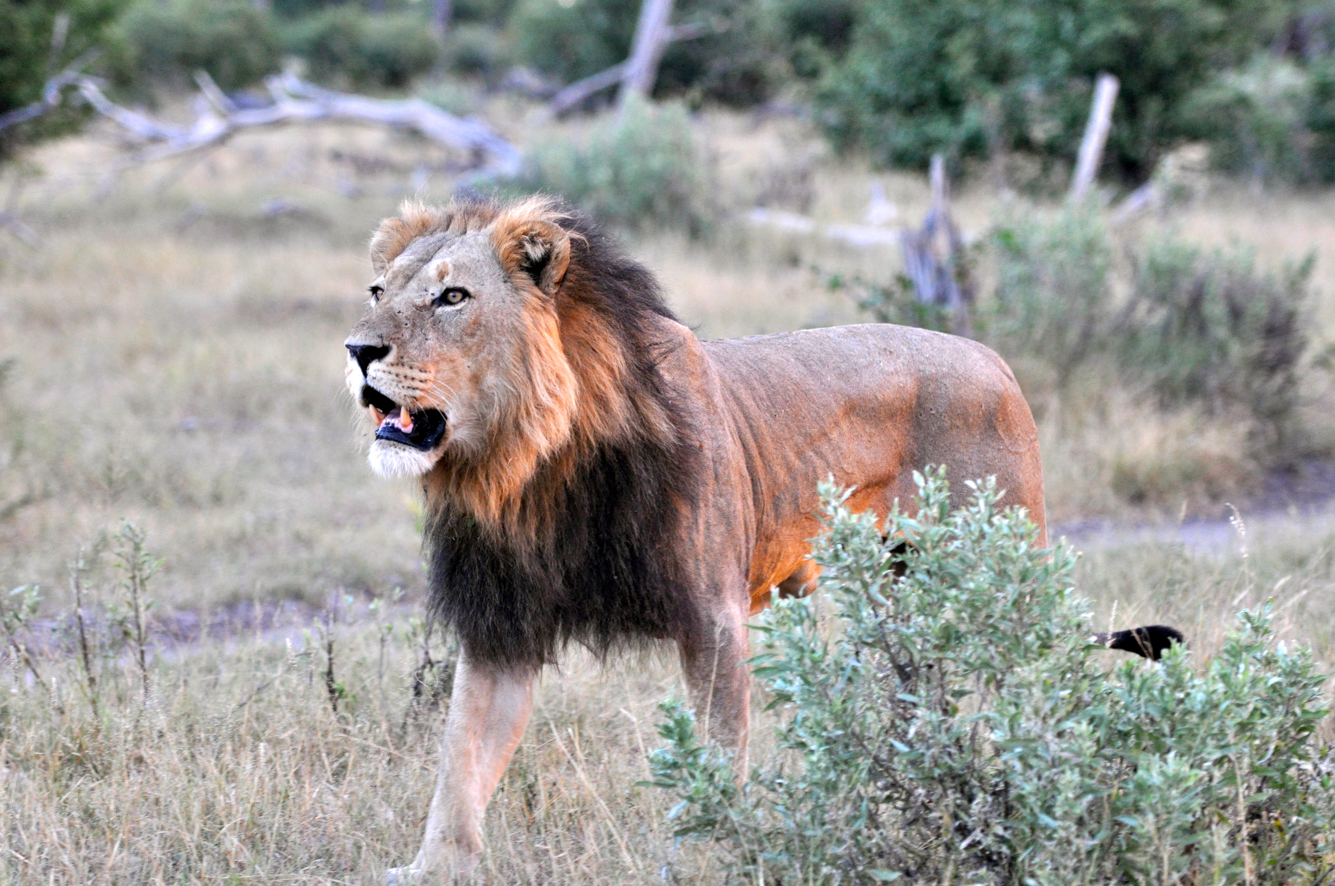 Quando estávamos voltando para o acampamento recebemos notícias pelo rádio sobre um grupo de leões, chegamos até eles. Eram um macho adulto com duas fêmeas, uma das quais estava grávida.