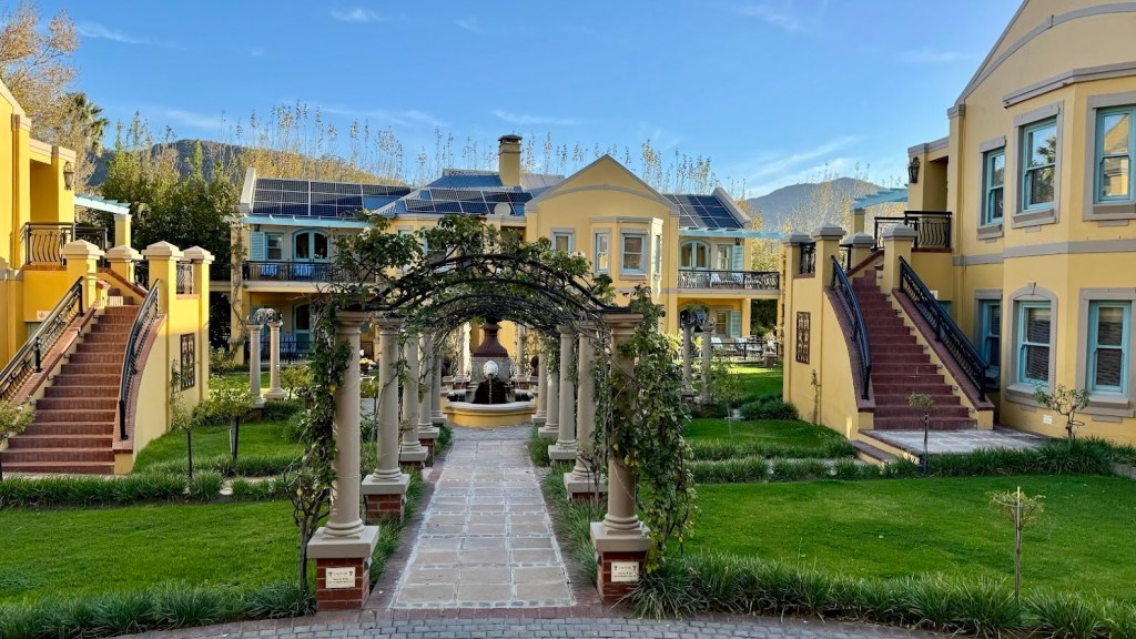 Adquirimos algumas garrafas de vinhos e voltamos para o excelente Franschhoek Country House & Villas, onde finalizamos a tarde apreciando um pôr-do-sol espetacular. Foi um belo dia através das vinícolas da África do Sul.