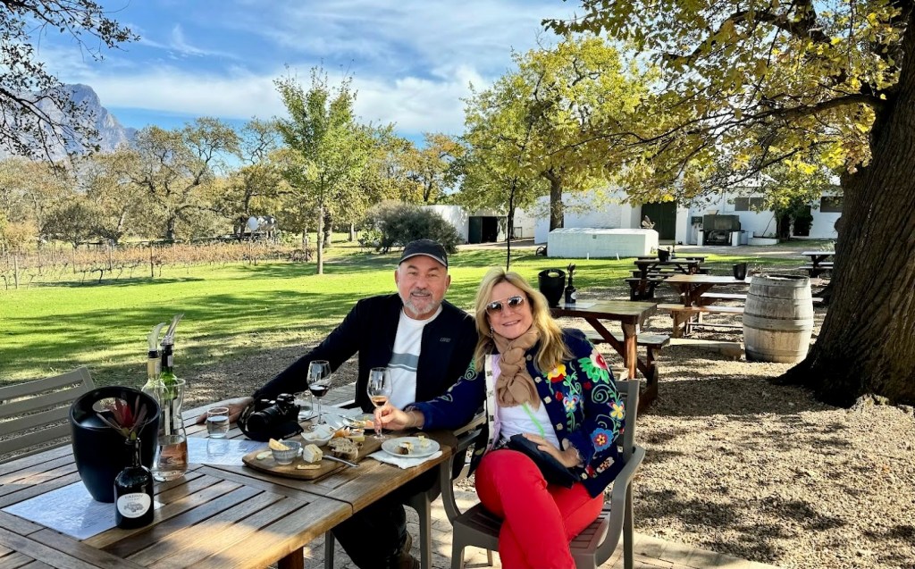 Perto de Franschhoek existem muitas vinícolas com opções para degustação. Algumas delas possuem pousadas e amantes dos vinhos se hospedam por aí quando fazem circuitos com esse objetivo. Decidimos aproveitar o dia conhecendo algumas vinícolas da região dos vinhedos do Cabo. Combinamos um programa privativo com a concierge do Franschhoek Country House & Villas, onde estávamos hospedados, que incluía degustação de vinhos e visita a quatro vinícolas da região de Franshhoek.