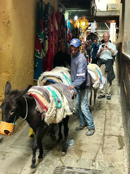 Othman falava vários idiomas, dentre eles o português, pois havia estudado por alguns meses em Coimbra e isso ajudou muito na comunicação com o grupo. Seguimos para o hotel. A van, não entra na Medina, onde os becos são muito estreitos. Paramos numa praça próxima e seguimos arrastando as malas pelos caminhos que levaram ao Hotel Riad La Perle de la Medina.