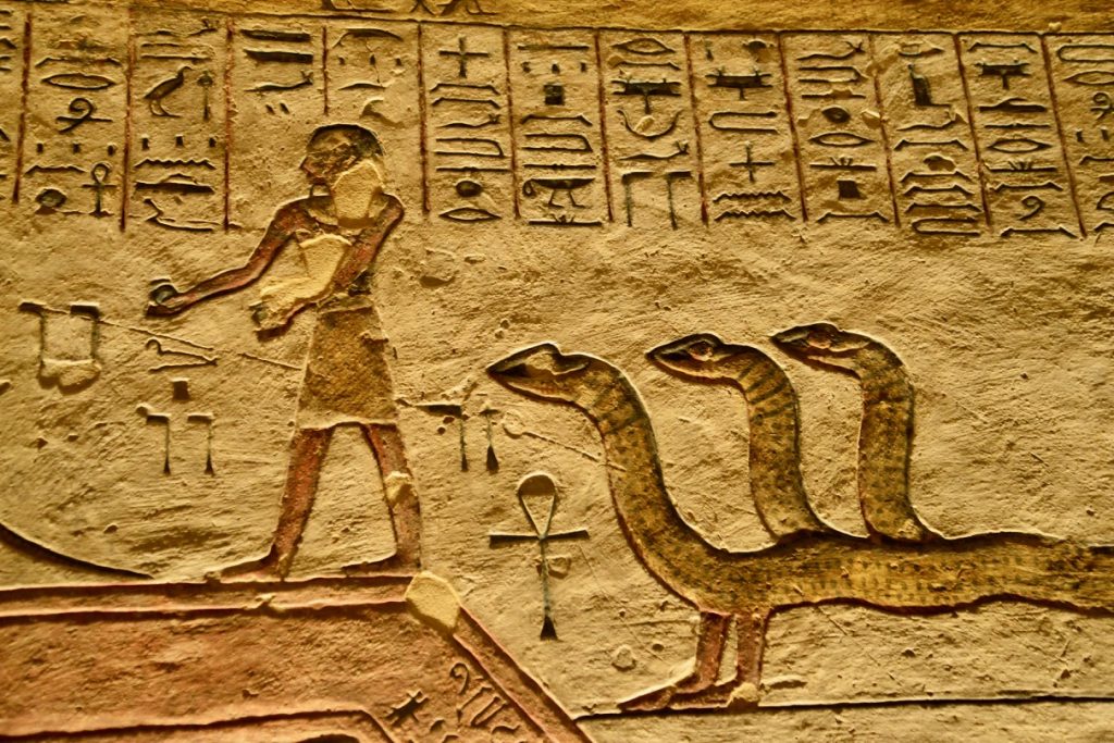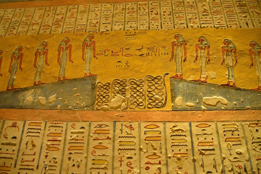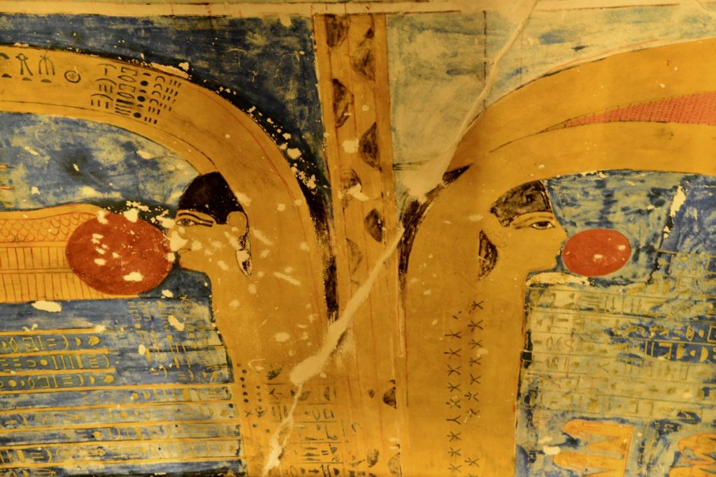 Os túneis que levam às câmaras mortuárias são ricamente decoradas por murais com escritas em hieróglifos, cenas do quotidiano e imagens sacras em todas as paredes dos túmulos.