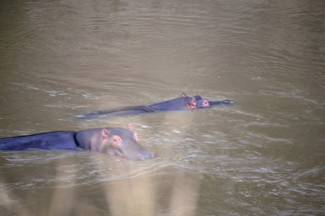 Seguimos pela beira do rio e ficamos observando os hipopótamos. Vivem a maior parte do tempo dentro d’água, onde podem ficar submersos por até 5min. O objetivo é manter a temperatura do corpo. Saem dos rios à noite para pastar nos arredores. Possuem pelagem grossa e são muito agressivos. Matam mais homens na África do que leões, leopardos e rinocerontes juntos.