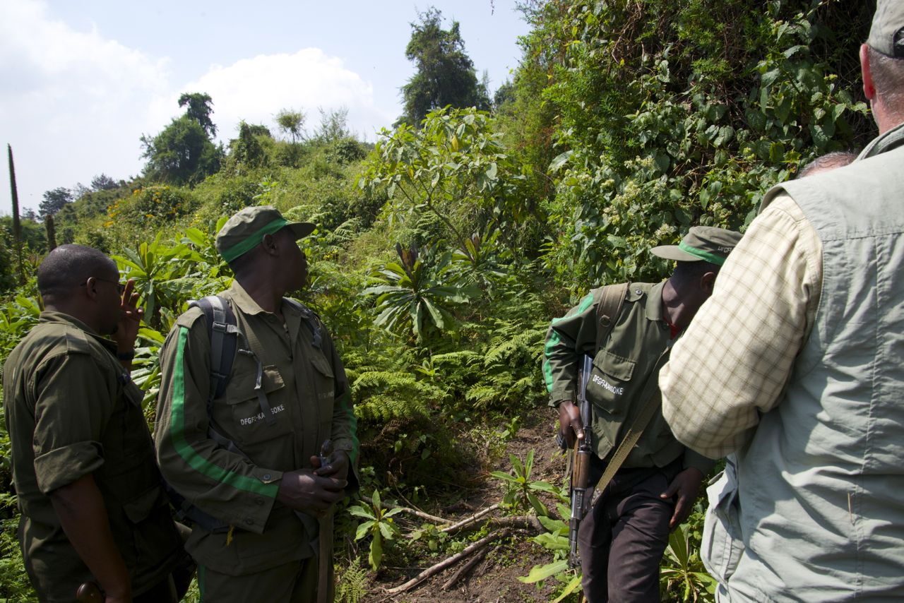 O carro nos deixou num vilarejo, na base de uma das montanhas vulcânicas que compõem o complexo denominado de Montanhas dos Gorilas. O Parque Nacional dos Vulcões de Ruanda está integrado territorialmente com um parque nacional em Uganda e outro no Congo, e os gorilas-das-montanhas vivem nesses três países. Toda essa região é conhecida como Parque Nacional Virunga.