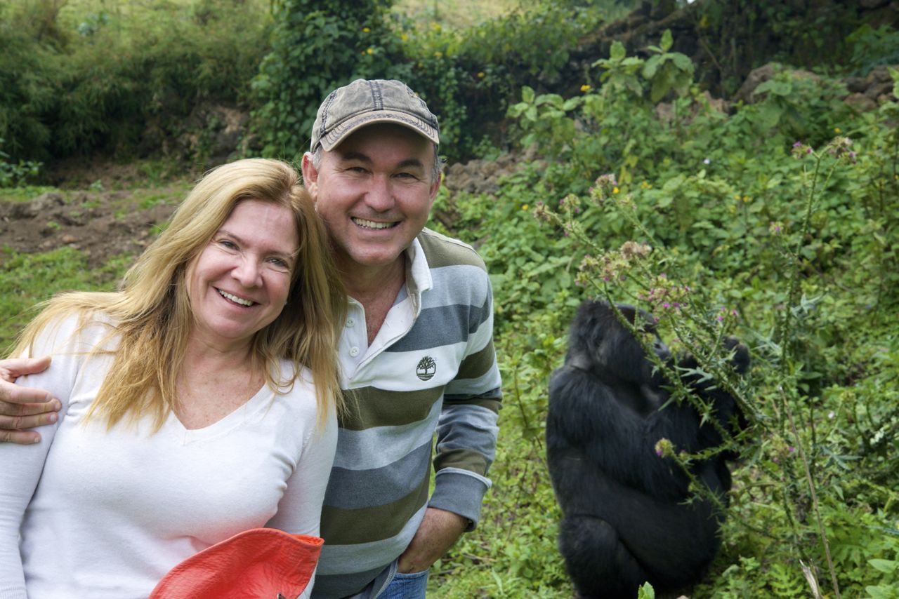 Ficamos por mais de uma hora no convívio com os gorilas. Quando estávamos indo embora, eles nos presentearam com uma área descampada, onde pudemos fazer as últimas fotos e “selfies”.