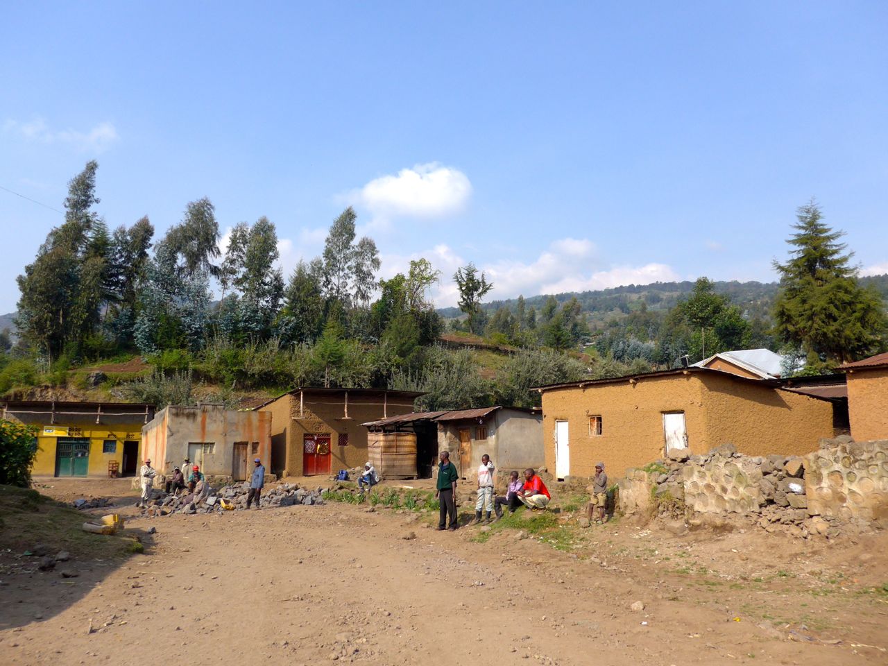 Saímos do Centro de Visitantes de Kinigi, em Ruanda (“Brieffing Point”) e pegamos o caminho até um vilarejo na base da montanha, a alguns quilômetros dali. Passamos por comunidades muito pobres. Os carros levantavam uma poeira intensa, que pintava de ocre as pessoas que caminhavam pela beira da estrada.