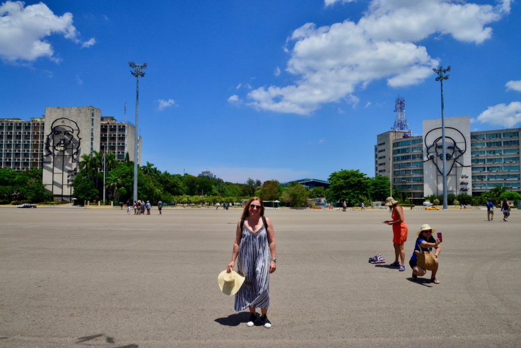 Estávamos em Havana, fazendo um city tour por Havana Velha. Após o almoço, continuamos, num passeio em carro aberto. Num daqueles carrões que são um dos símbolos do país. De carro, fomos para os bairros mais distantes, para a região de Vedado, onde o maior destaque é a Praça da Revolução. Vedado foi um bairro planejado, do final do século XIX. Possui avenidas largas e passeios generosos. Se tornou um bairro residencial importante e hoje é o centro político e cultural de Havana.