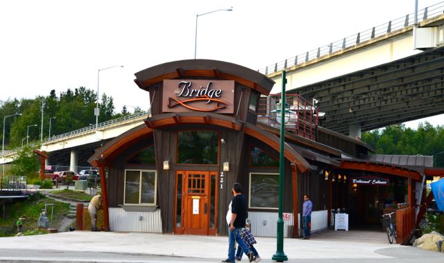 Fomos até o Restaurante Bridge Seafood, localizado numa ponte sobre o braço de mar onde acontece a pescaria na maré vazante. O restaurante é bem turístico. Era isso que estávamos procurando. Todos queriam provar o Caranguejo do Alasca ou o Halibute. Encontramos o lugar certo, mas não gostamos tanto assim. O Alasca ainda estava nos devendo um bom restaurante.