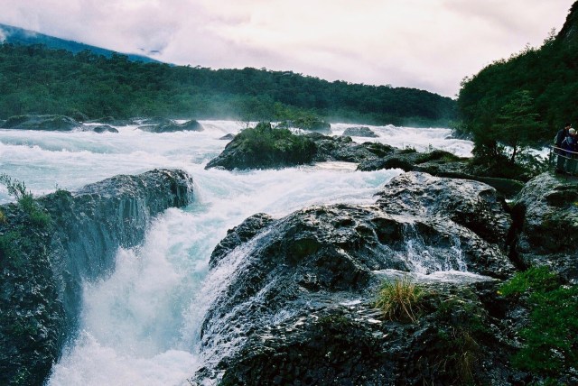 O Rio Petrohué surge do transbordamento do Lago Todos Los Santos e desce bravio no conjunto de corredeiras conhecido como Saltos de Petrohué.