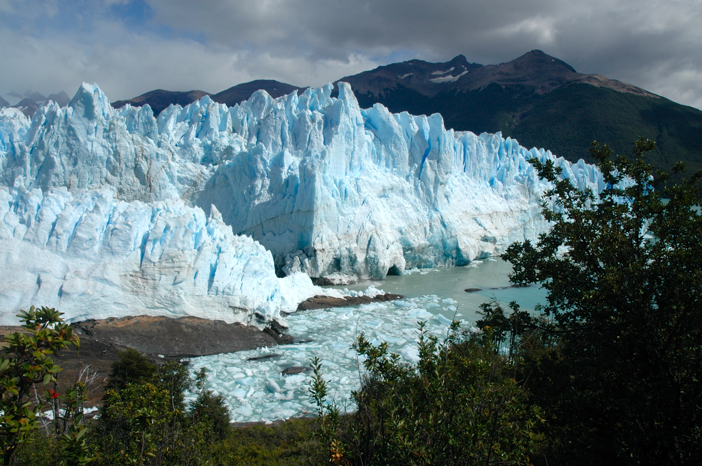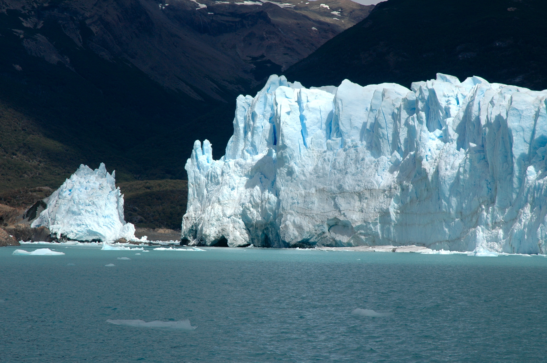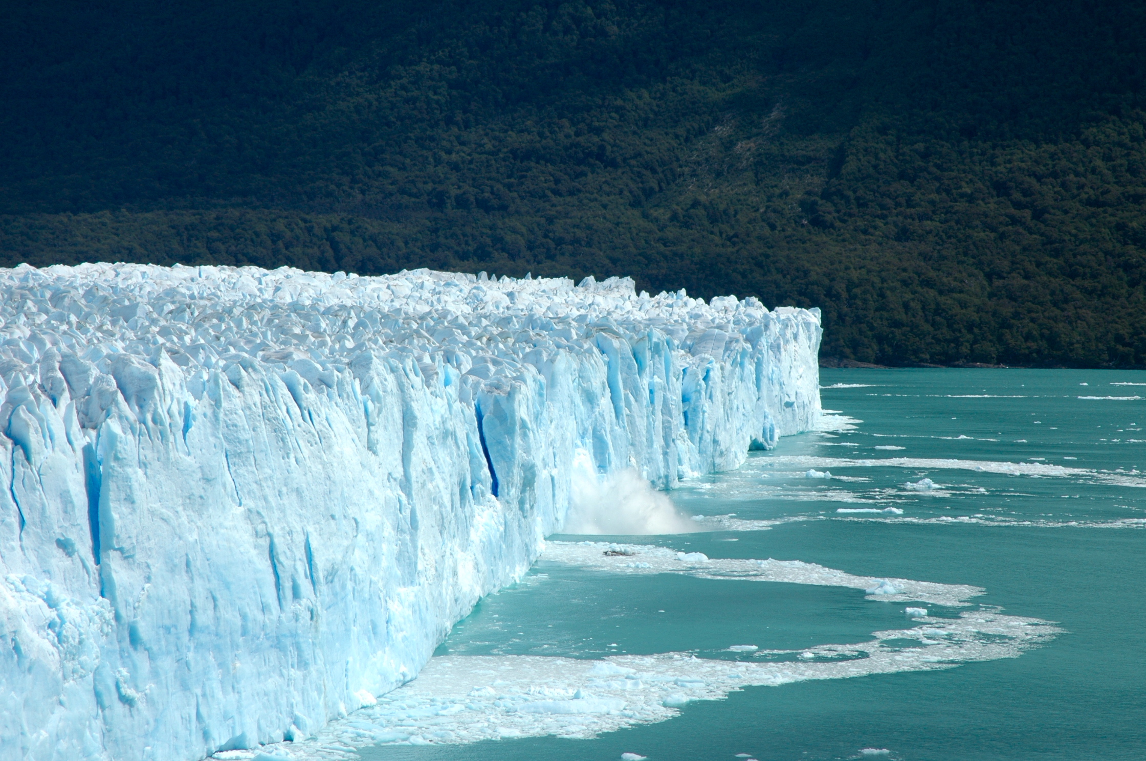 Quando chegam no Lago Argentino eles vão lentamente se fragmentando em pequenos blocos de gelo e até icebergs que caem dos paredões e ficam flutuando nas águas do lago.