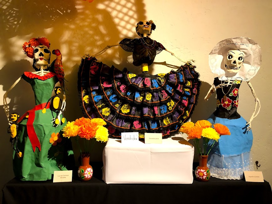 Nessa época do ano, havia também uma bela exposição temporária de “catrinas”, feitas por artistas plásticos e artesãos de Puebla. La Catrina foi o nome dado aos esqueletos bem-vestidos desenhados pelo artista José Guadalupe Posada que ajudou a fomentar a fascinação mexicana pela morte.