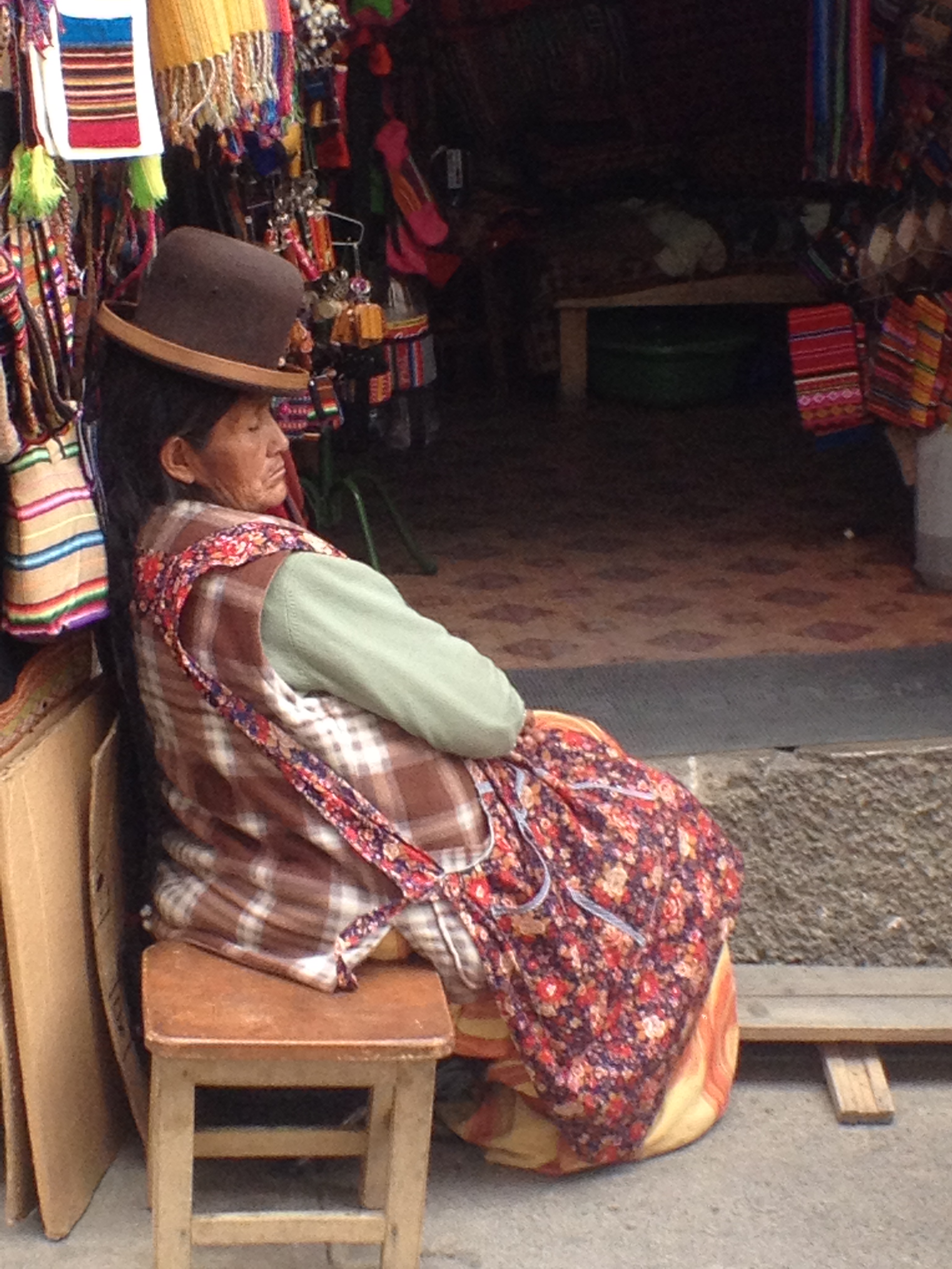 Por onde se olhe, é possível ver as típicas bolivianas, normalmente senhoras, com os chapéus de coco, saias coloridas e tranças enormes. O pano que carregam nas costas é usado para carregar crianças ou coisas, como se fosse uma bolsa.