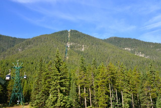 Estávamos na região das Montanhas Rochosas do Canadá, em Banff. Pela manhã descobrimos que iríamos ter o dia mais bonito da viagem até aqui. O céu estava claro e com uma luz maravilhosa, o que nos animou a tentar subir na gôndola de Banff. No dia anterior tentamos ir, mas a neblina nos desencorajou, por sugestão dos funcionários da gôndola, que nos disseram não valer a pena, pois não conseguiríamos ver nada lá de cima.