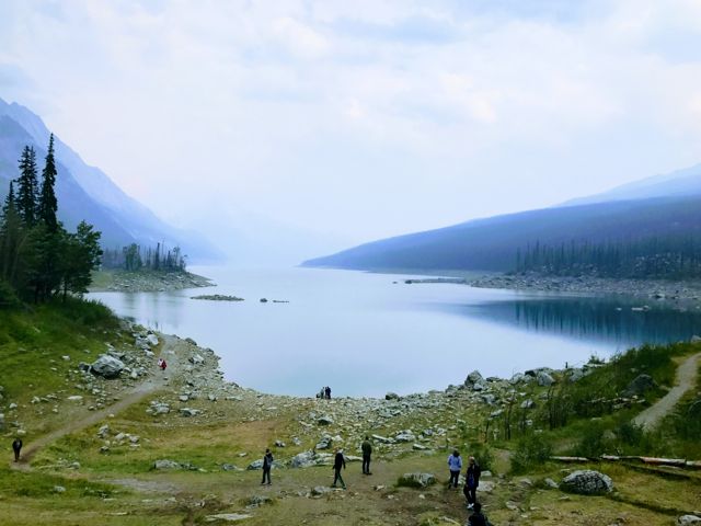 O Maligne Lake é um lago de origem glacial, foi formado a partir do degelo de antigos glaciais. Possui até 96 metros de profundidade. Esse tipo de lago normalmente é profundo e extenso e nem sempre muito largo. O seu formato acompanha o do glacial que lhe deu origem. Voltamos pela Maligne Road e finalmente, no final da tarde, chegamos a Jasper.