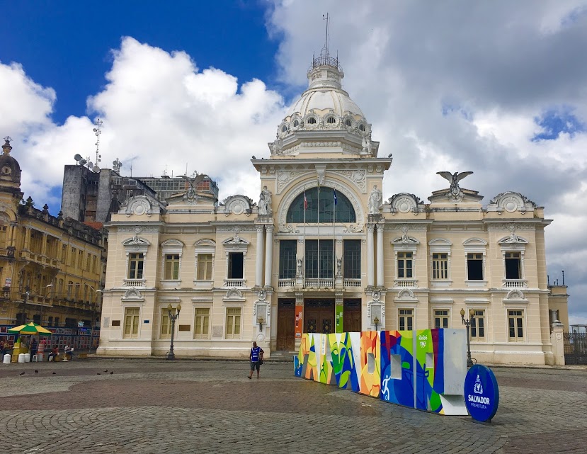 O Centro Histórico de Salvador está dividido em duas partes, interligadas pela passagem Pelourinho-Carmo. Como o nosso hotel ficava na área do Carmo, iniciamos o programa pelo lado oposto, a área do Pelourinho. Estacionamos o carro em frente ao Palácio Thomé de Souza, onde funciona a Prefeitura de Salvador, entre a Praça Municipal e a Praça da Sé. O prédio é um projeto polêmico desde a sua origem. De gosto duvidoso, foi construído em estrutura metálica, de aço e vidro, numa área de 2 mil metros quadrados e não tem nenhuma relação com o sítio histórico da cidade. No local funcionavam um estacionamento e um jardim. O projeto é do arquiteto e urbanista João Filgueiras Lima, o Lelé e foi executado durante o mandato do ex-prefeito Mario Kertész, inaugurado em 1986.