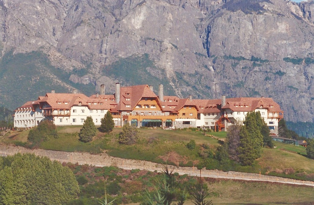 Numa das paradas na beira do lago, temos uma bela vista do Hotel Llao Llao, o mais famoso dessa área andina da Argentina. O Hotel Llao Llao foi inaugurado em 1938, totalmente feito de madeira. Pegou fogo no ano seguinte, foi totalmente destruído e teve que ser reconstruído. Tudo isso aumentou a fama do Hotel Llao Llao.