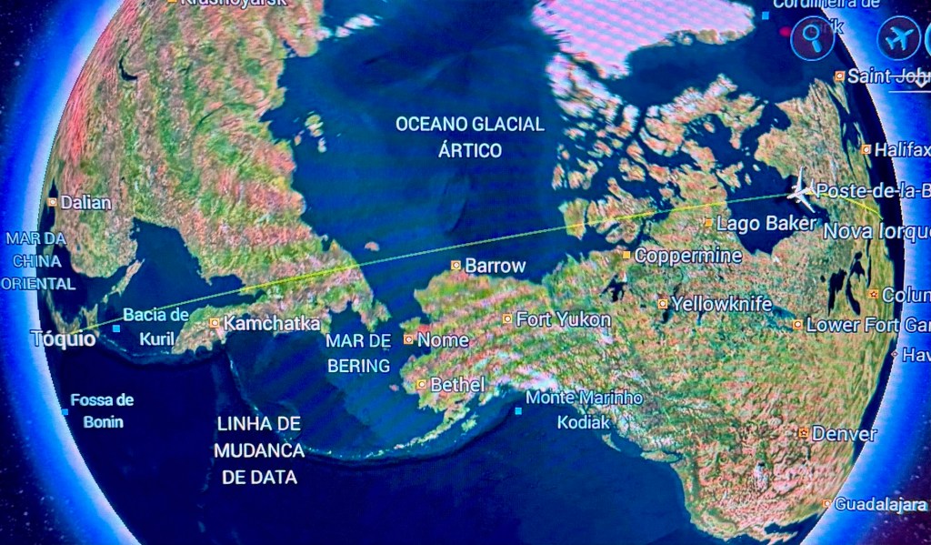 No dia 24 de março, embarcamos num voo que nos levou a Tóquio. A travessia do Pacífico incluiu um detalhe curioso do calendário. Ao cruzarmos a Linha Internacional de Mudança de Data, avançamos um dia inteiro no tempo. Partimos no dia 24 e chegamos no dia 25 de março no Japão. Uma viagem que atravessa o Pacífico, nos coloca diante de um fenômeno essencial da geografia: o sistema internacional de fusos horários. Ao atravessar continentes e oceanos em poucos dias, percebemos na prática como a geografia detalhou o tempo para acompanhar o movimento de rotação do planeta.