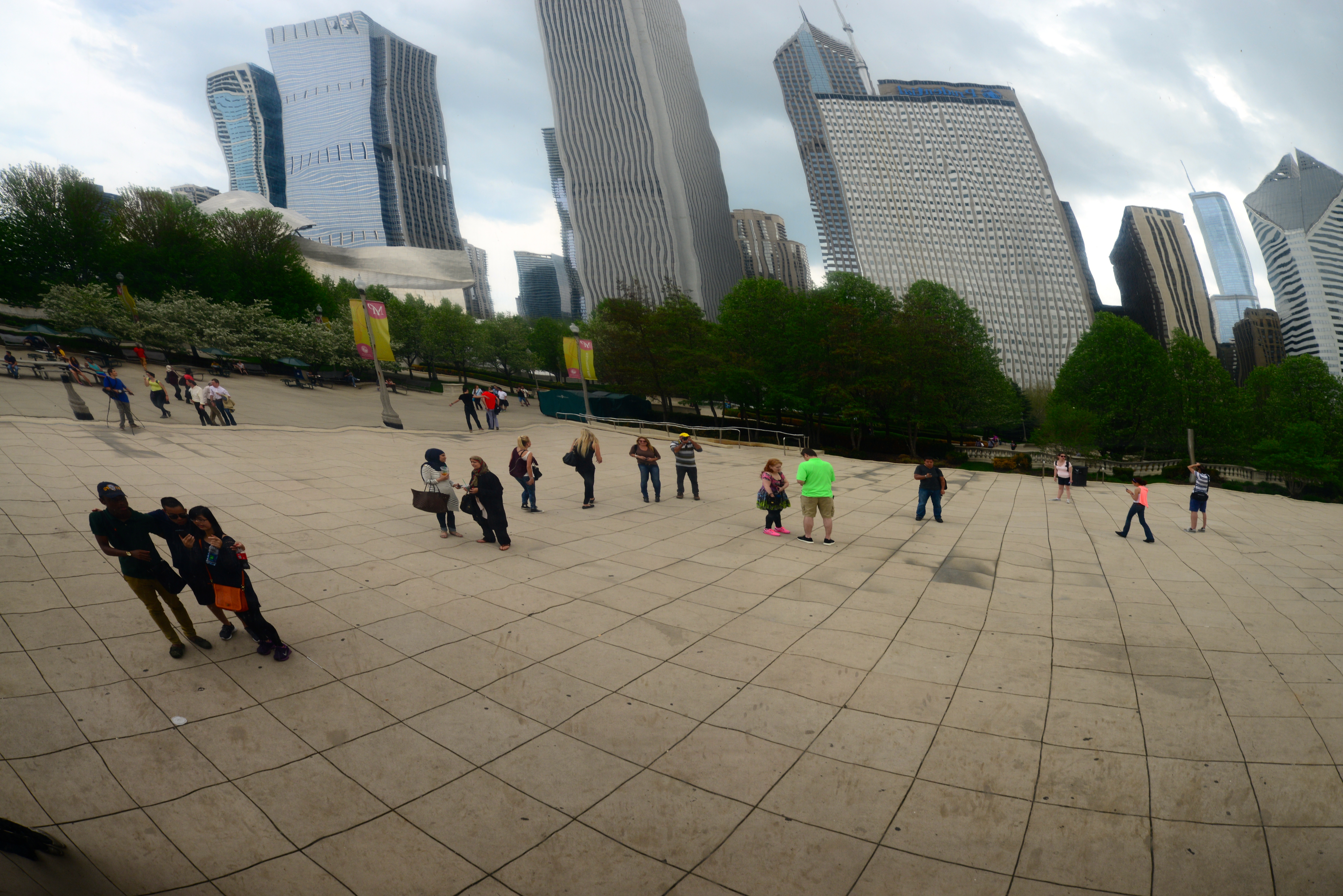 Seguimos a pé a partir da Michigan Avenue Bridge, entramos em Downtown, onde fizemos a primeira parada, no Millenium Park. Um grande parque público em Chicago, que funciona como centro de arte, música, paisagismo e arquitetura. Foi concebido para marcar a chegada do século XXI e é hoje um dos espaços mais queridos pelos moradores da cidade. Foi inaugurado na primavera de 2001.