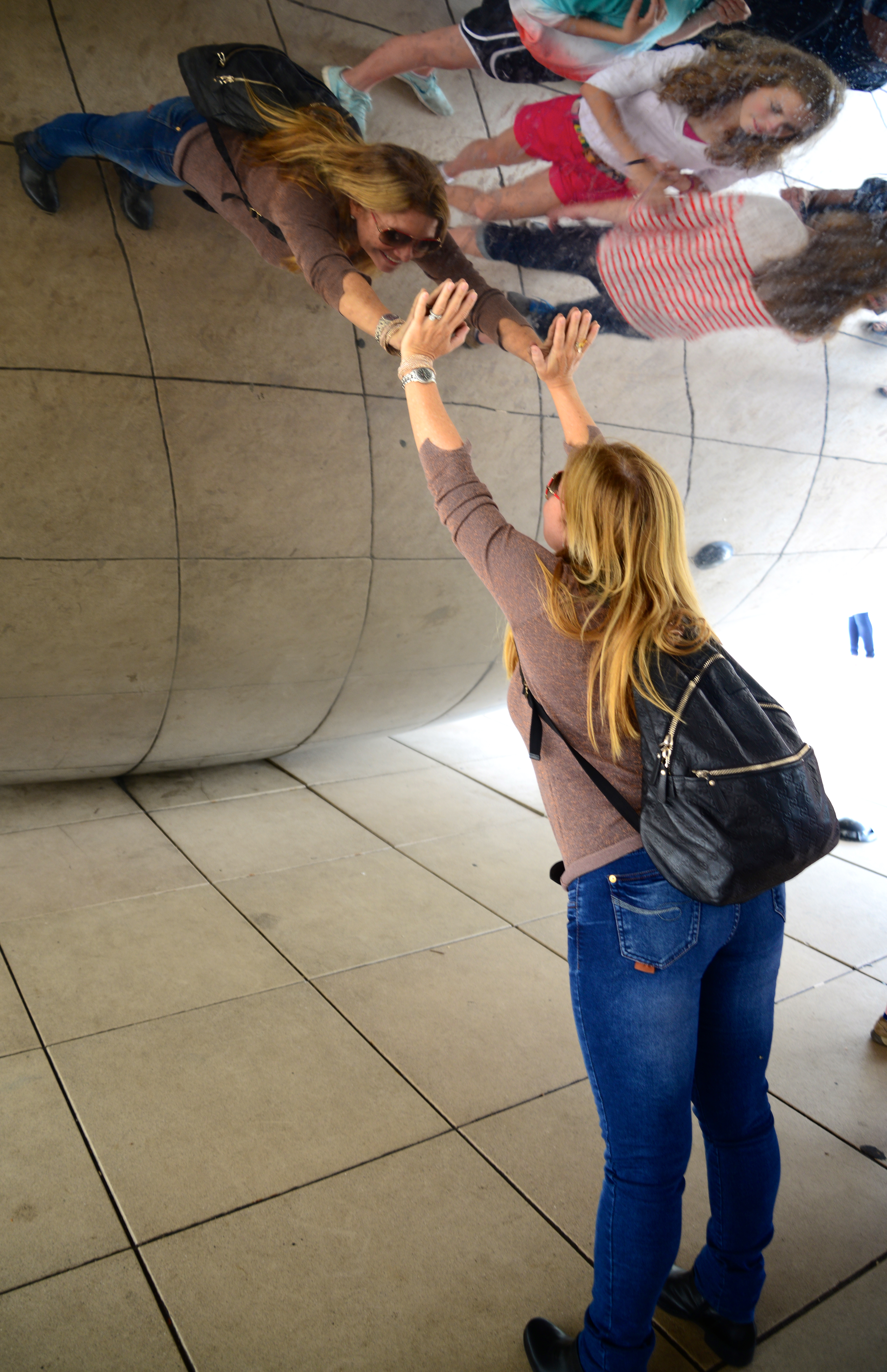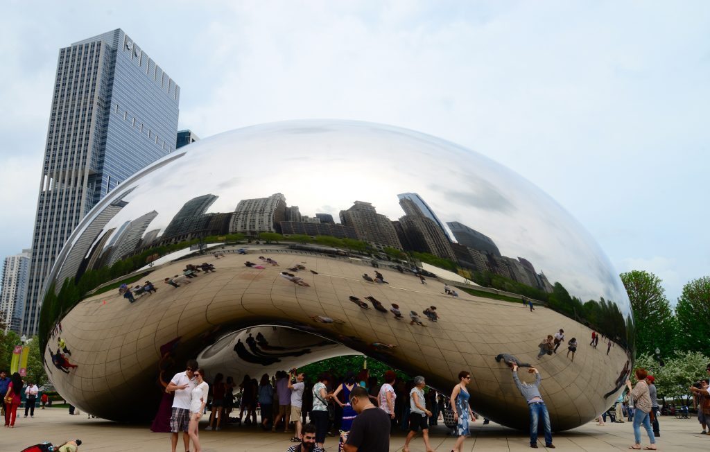 Os reflexos do “The Bean” distorcem o panorama urbano de Chicago e permitem uma interatividade com o público que visita o Parque e se diverte com as formas assumidas pelas pessoas e pela paisagem. Nenhum visitante resiste a uma foto tirada sob o “Cloud Gate”.