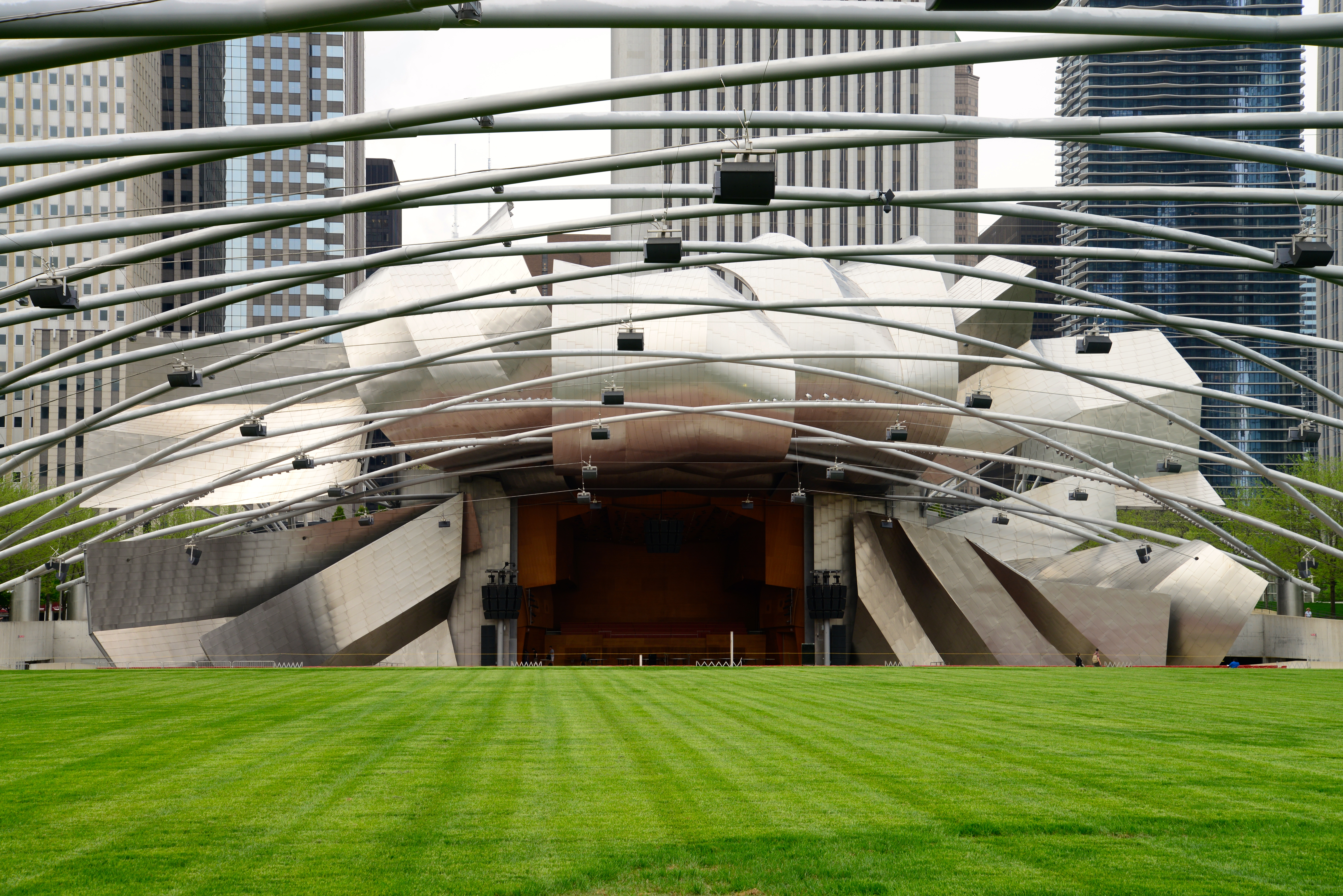 Outra atração importante do Parque é a sua maravilhosa Concha Acústica, o Jay Pritzker Pavillon, com capacidade para 14 mil pessoas. Projeto arrojado do arquiteto Frank Gehry e do escritório Skidmore, Owings and Merril. A Concha Acústica é um gigantesco centro de artes cênicas e música, que possui instalações permanentes de som e palco. É intensamente utilizada para concertos de verão.