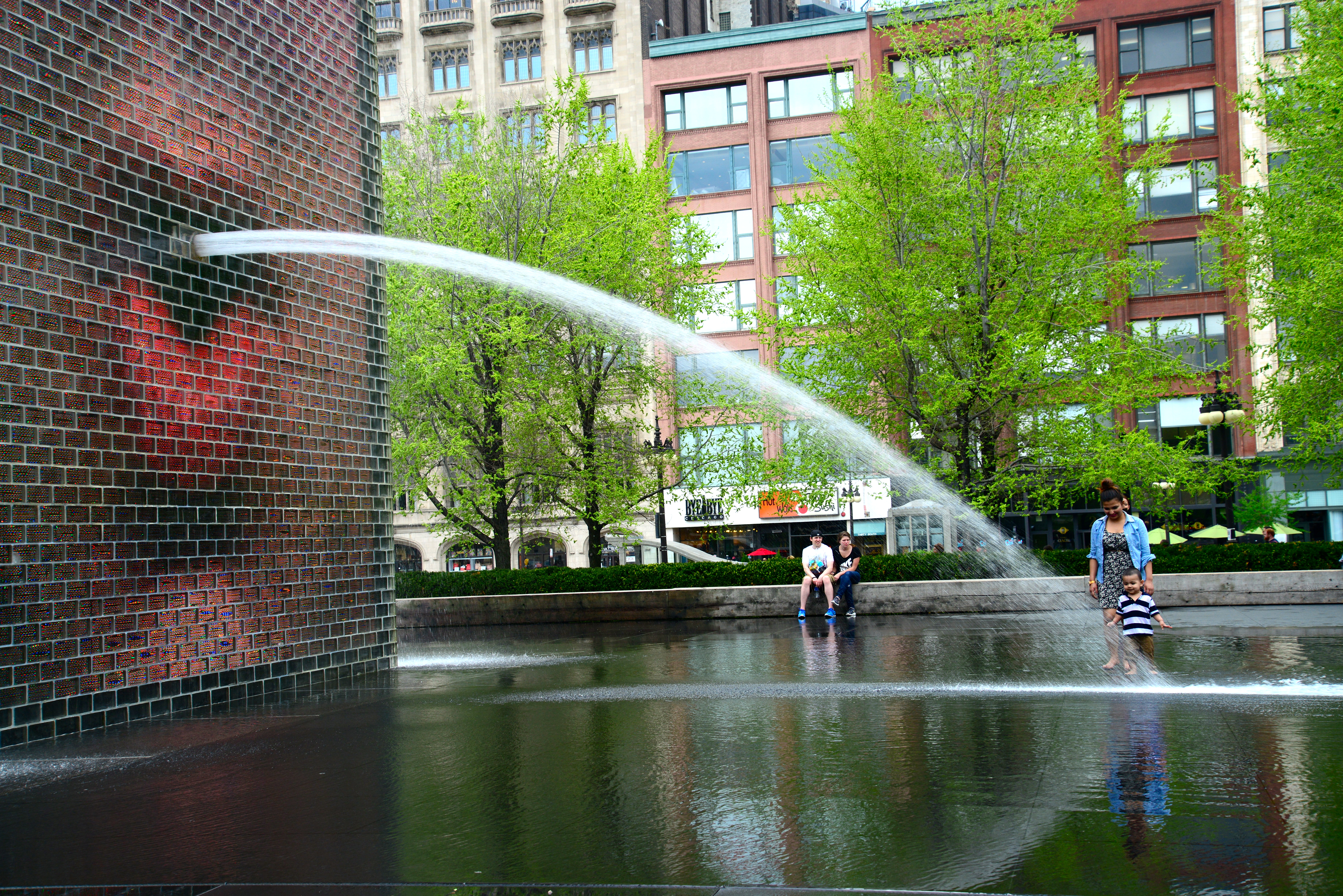 Ainda no Millenium Park a Crown Fountain é uma outra atração imperdível. Existem duas torres com blocos de vidro de 15 metros de altura, que na prática são fontes modernas que permitem interatividade com crianças e adultos, contribuindo para que o Parque seja um imenso Play Ground de Chicago.