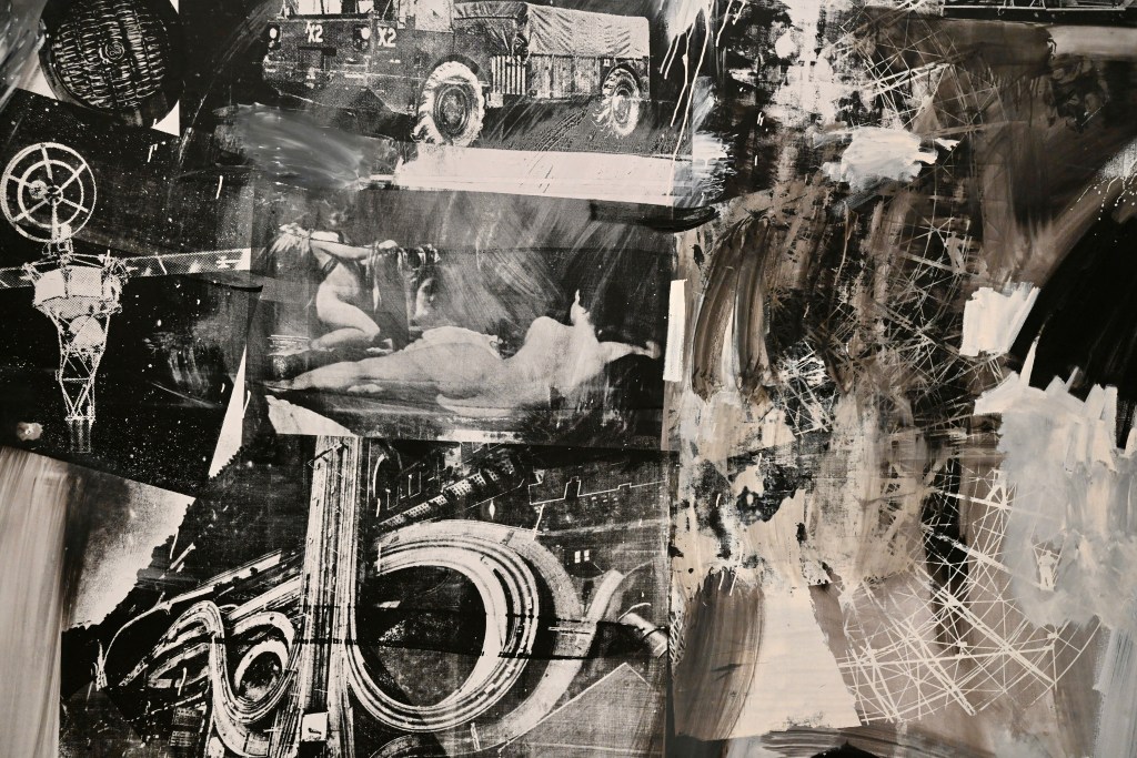 No Museu Guggenheim ficam expostas algumas obras de Robert Rauschenberg, artista norte-americano nascido em 1925 e um dos nomes centrais na transição entre o expressionismo abstrato e a arte contemporânea. Sua produção rompeu com os limites tradicionais da pintura, incorporando fotografias, objetos e materiais do cotidiano em composições híbridas. Entre os destaques, chama atenção um grande painel que reúne imagens sobrepostas, fragmentos visuais e diferentes técnicas, criando uma leitura dinâmica e múltipla. A obra reflete seu interesse em aproximar arte e vida, utilizando referências da cultura urbana e da mídia. No contexto do museu, esse tipo de trabalho amplia a percepção do visitante sobre os caminhos experimentais da arte no século XX.
