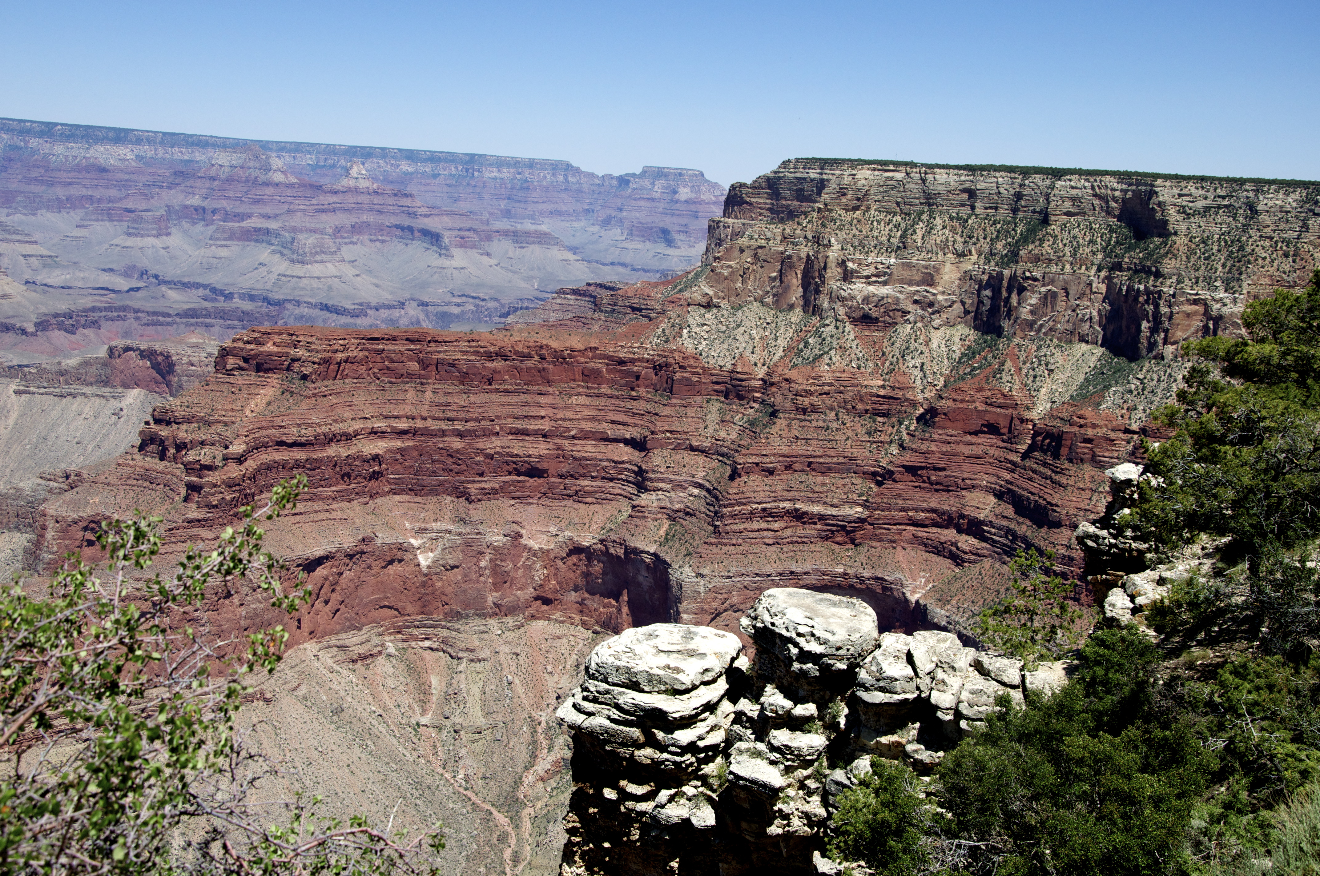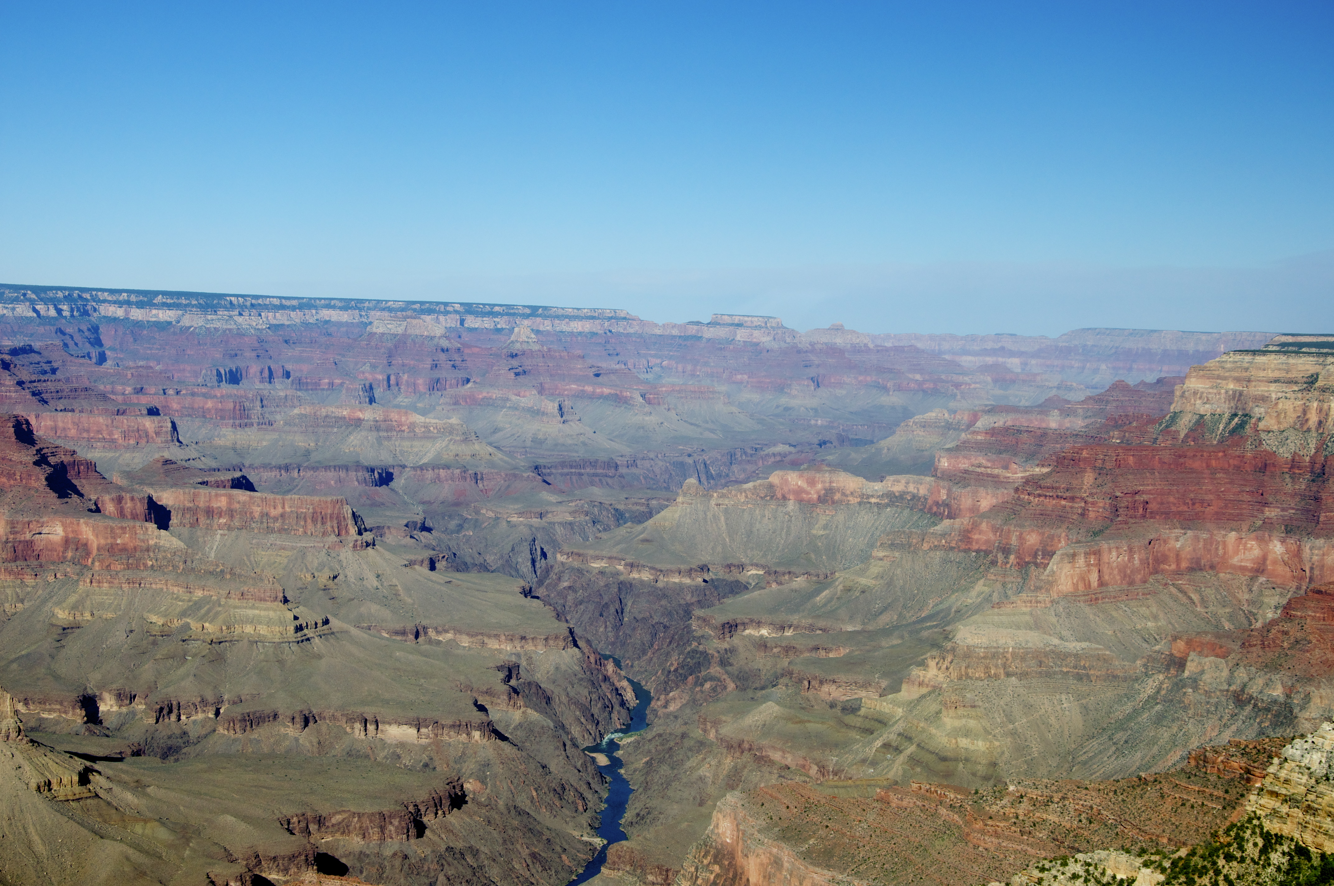 Na região do Parque Nacional do Grand Canyon observamos toda a sua obra construída com perseverança ao longo de aproximadamente seis milhões de anos. Lentamente o rio foi retirando o terreno sedimentar e expondo as inúmeras camadas de rochas coloridas, estabelecendo um mosaico que parece foi feito a mão.