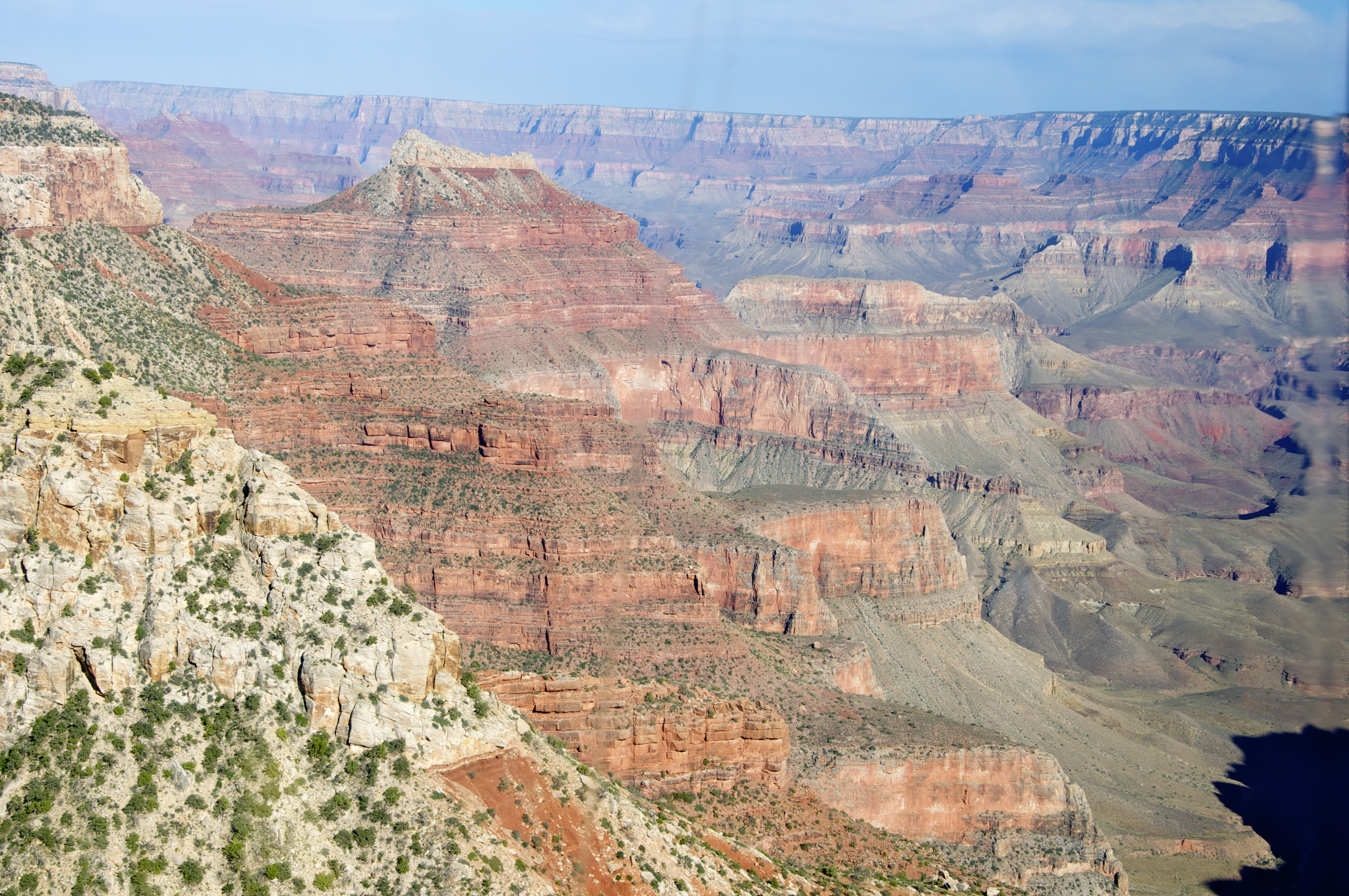 Depois que percorremos o “Hermit’s Rest”, fomos para o “gran finale”. Pegamos um helicóptero e sobrevoamos o canyon, fazendo a travessia da Borda Sul para a Borda Norte. A sensação é que estávamos em contato direto com Deus, tamanha é a grandiosidade daquilo que se vê lá de cima.