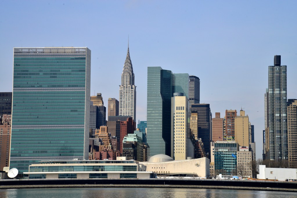 Após o almoço voltamos para Manhattan. Enquanto aguardávamos o Water Taxi, admiramos o perfil da cidade e o maior destaque desta vista é o prédio sede da ONU.