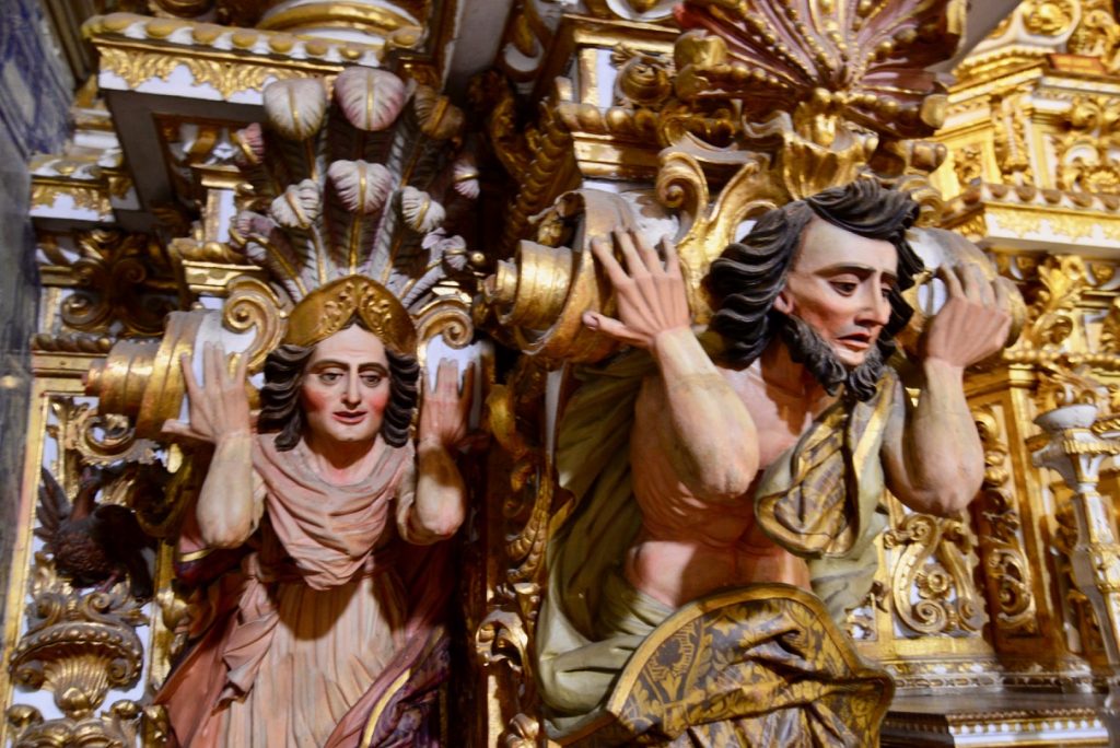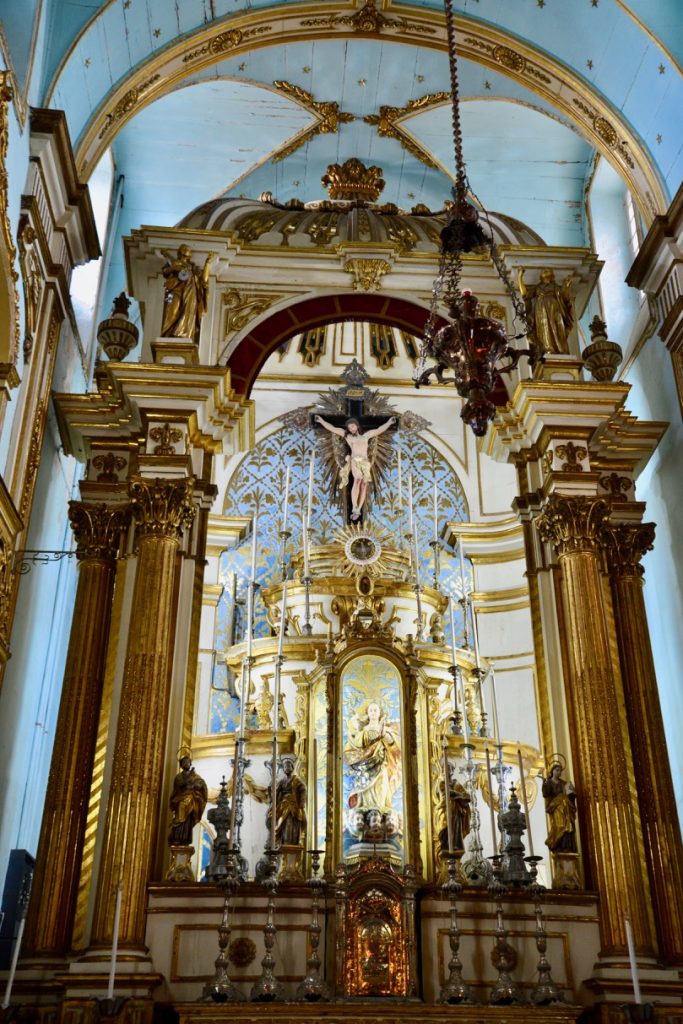 O interior da igreja foi refeito no século XIX, em estilo neoclássico com talhas douradas ao redor.