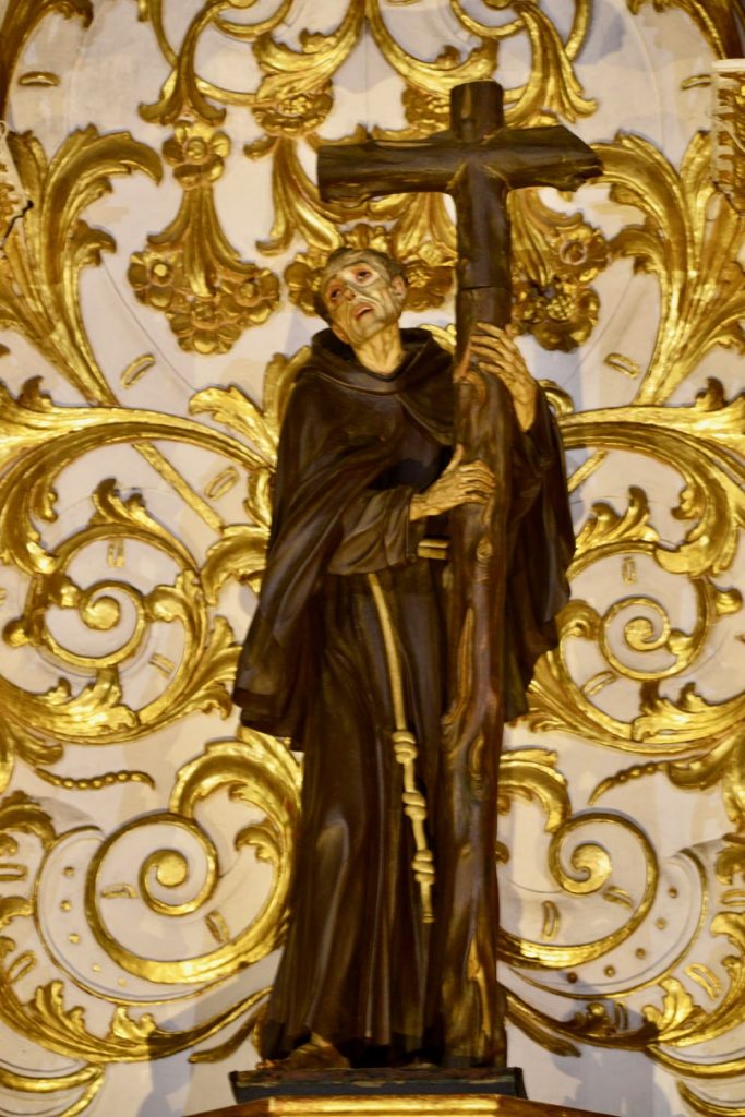 Chegamos até o Convento e Igreja de São Francisco de Assis. Um lugar que considero especial por vários aspectos. No início da minha vida profissional, cheguei a ser guia da igreja por dois anos seguidos e trago memórias boas dessa época. Aprendi a admirar a Igreja de São Francisco como uma rara obra de arte do barroco brasileiro. Chegava a passar horas sentado nos bancos da igreja, buscando encontrar novos detalhes no trabalho espetacular dos entalhes barrocos banhados a ouro.