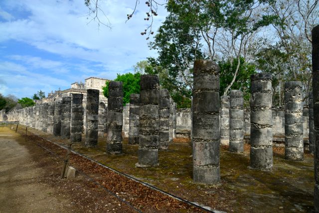 Outra construção imponente da cidade de Chichen Itzá, é o Templo das Mil Colunas, ou Templo dos Guerreiros. Um enorme palácio ricamente decorado com cabeças de serpentes e com cerca de mil colunas de sustentação que dava a volta em todo o prédio. Esse templo era utilizado como um grande mercado popular e também nas cerimônias de sacrifício humano.