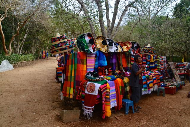 O ponto negativo que vimos na visita a Chichen Itzá foi a grande quantidade de ambulantes espalhados pelo sítio arqueológico. Esse é um fenômeno relativamente recente e começou a acontecer após a estatização do sítio. Os vendedores oferecem diversos tipos de artesanatos, nem sempre de boa qualidade ou bom gosto.