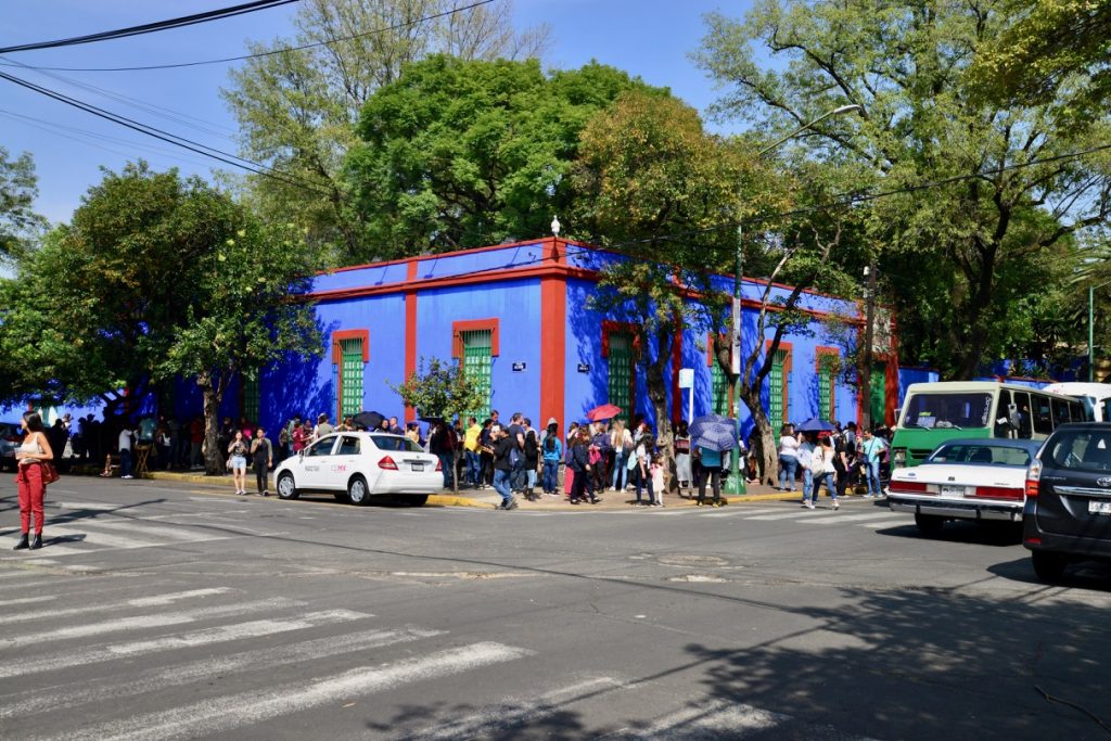 Um dos motivos que nos impulsionou à viagem para o México foi a história de Frida Kahlo. Quando fizemos o roteiro, decidimos assistir mais uma vez ao filme Frida e ficamos ainda mais encantados com a história da artista plástica mexicana. Como tínhamos poucos dias dedicados à Cidade do México e um deles seria dedicado ao Dia dos Mortos, decidimos ir direto para o Museu Frida Kahlo. Cometemos um erro fatal. Não compramos os ingressos com antecedência e decidimos arriscar.