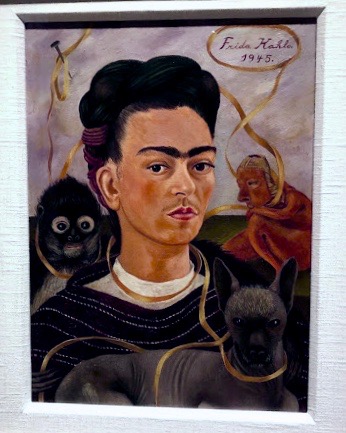 No “Autorretrato com um Macaco” Frida coloca cores vivas e fortes e elementos com os quais gostava de conviver.