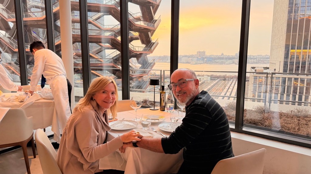 Encerramos o dia no Estiatorio Milos, ao lado do The Vessel, um restaurante grego, de culinária mediterrânea com foco em frutos do mar. Já tínhamos ido ao Estiatório Milos de Dubai e amamos. O do Hudson Yards de Nova York não chega a decepcionar, mas não achamos imperdível. O ambiente é organizado e o serviço segue um padrão bem definido, com destaque para a escolha dos ingredientes. É uma parada que funciona bem após um dia de deslocamentos pela cidade, especialmente pela localização e pela proposta direta do cardápio.