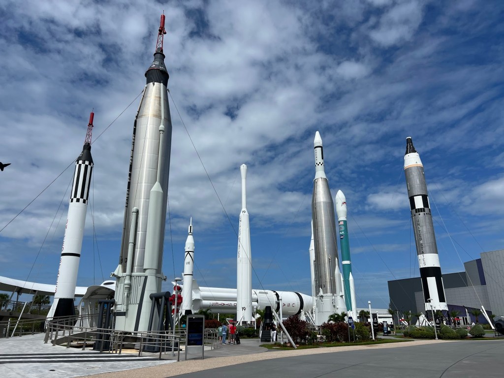 Logo na entrada do Kennedy Space Center aparece o Rocket Garden. Uma grande exposição de foguetes e espaçonaves posicionadas lado a lado, em pé e impressionando pela grandiosidade, todas são réplicas, mas impressionam. É o local ideal para uma foto de lembrança do “parque”. Uma das atrações é o Saturn V, um foguete com 110 metros de altura, que chegou a levar 27 astronautas ao espaço.
