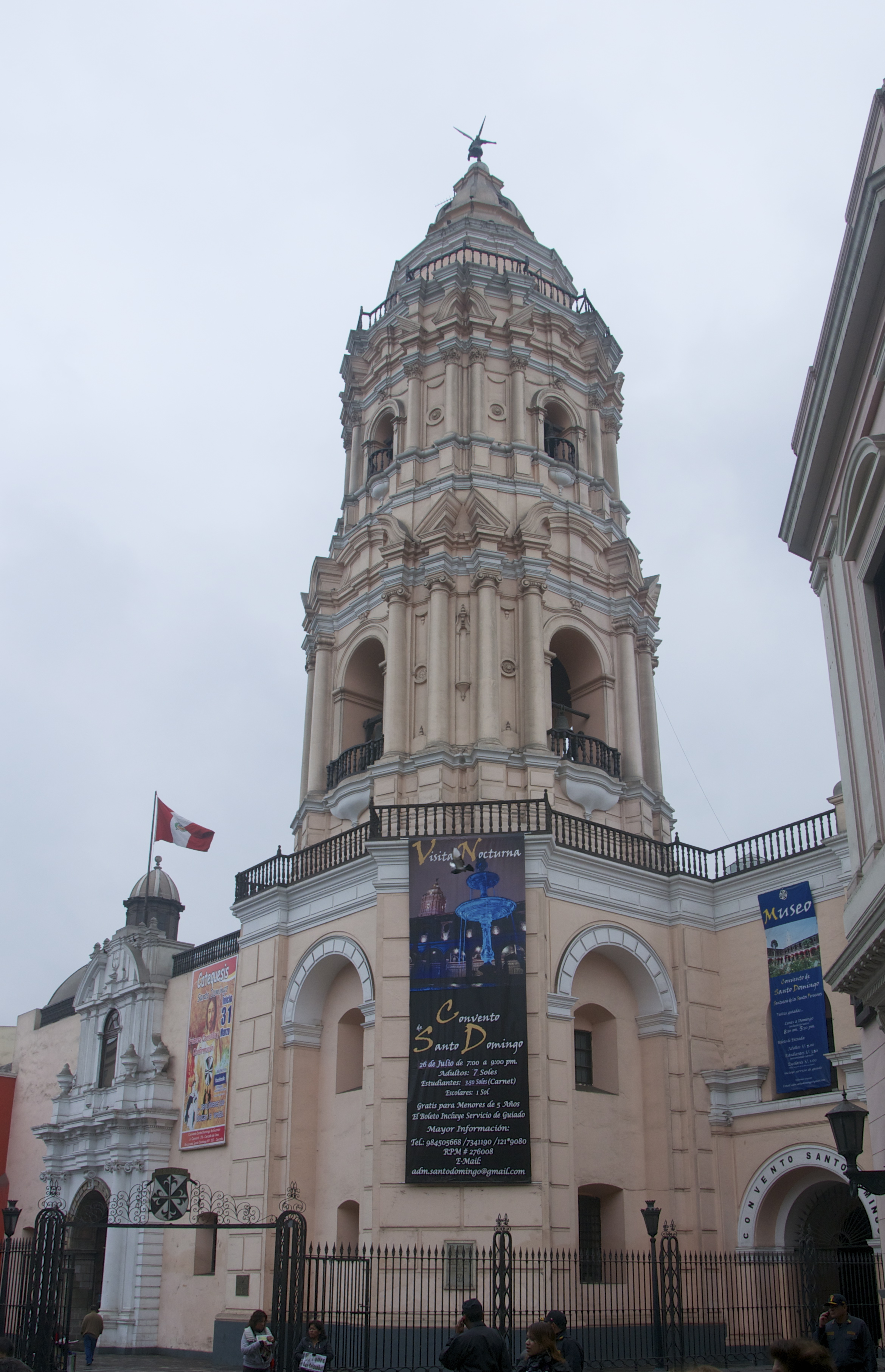 Estávamos no Centro histórico de Lima e seguimos a pé da Praça Mayor para O Convento de Santo Domingo. No início da colonização espanhola nas Américas, três ordens religiosas predominavam no trabalho de catequese dos indígenas: Os Jesuítas, com um trabalho de educação e catequese, os Franciscanos com fraternidade e assistencialismo e os Dominicanos com força e opressão.