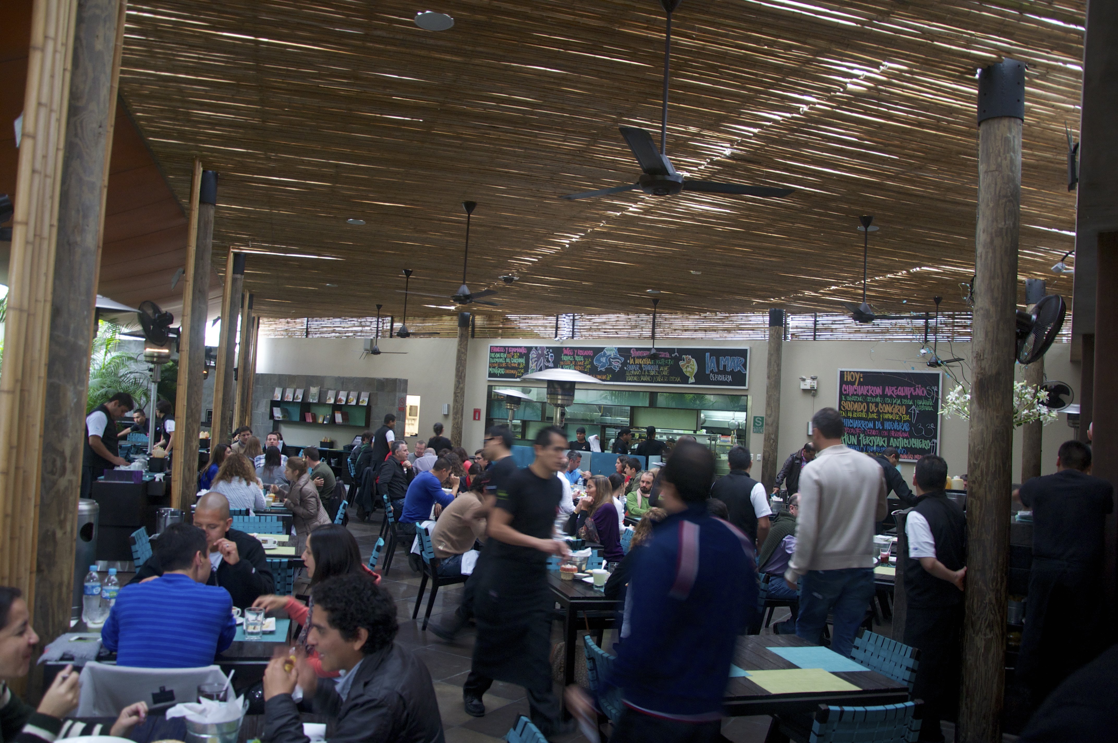 A fama da gastronomia peruana aumentou muito com o “chef” Gastón Acurio, dono de um conjunto de 33 restaurantes, entre os próprios e os franqueados, cujo mais famoso é o premiado Astrid & Gaston, que está classificado entre os 50 melhores restaurantes do mundo. Para conseguir uma mesa no Astrid & Gaston, precisa-se reservar com bastante antecedência. Não fizemos isso, portanto não conseguimos, mas o La Mar valeu muito a pena e compensou. Não fazem reservas para o almoço. É por ordem de chegada e espera-se um pouco.