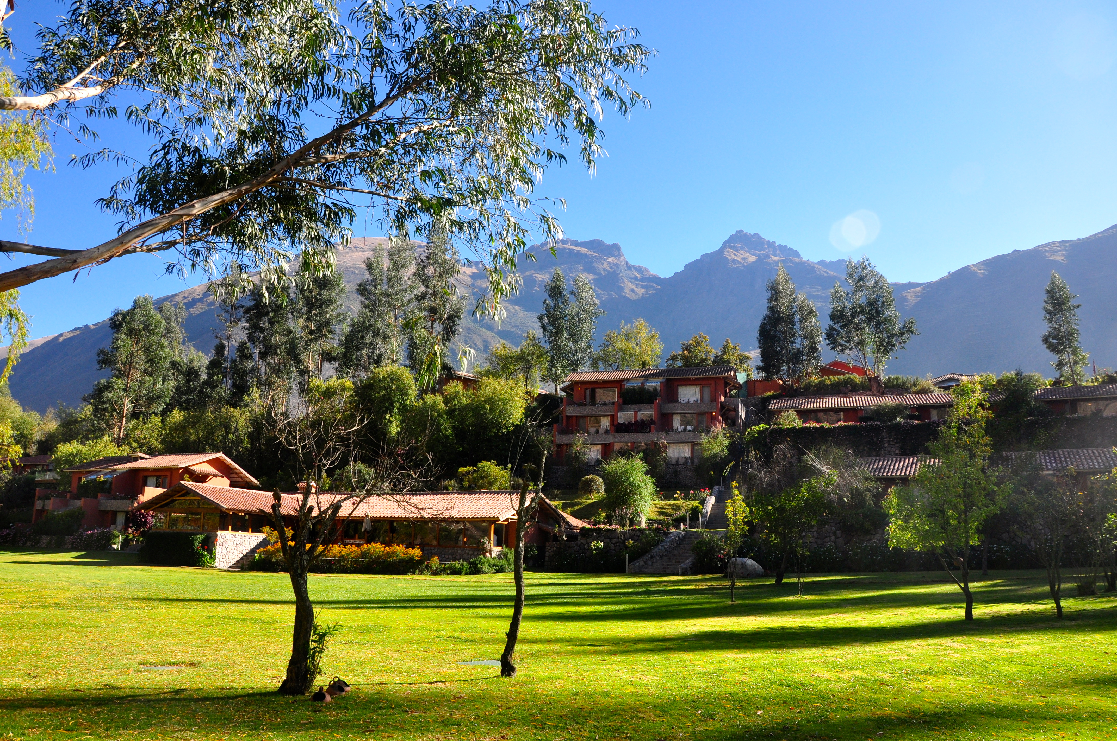 Após a visita a Ollantaytambo seguimos para o Hotel Rio Sagrado, no meio do Vale, onde ficamos hospedados. O hotel, de excelente qualidade, pertence à rede Orient Express. É um hotel para descanso, relaxamento e pernoite, não possui televisão nos quartos, mas a rede wi-fi é de fácil acesso e o restaurante de primeira.