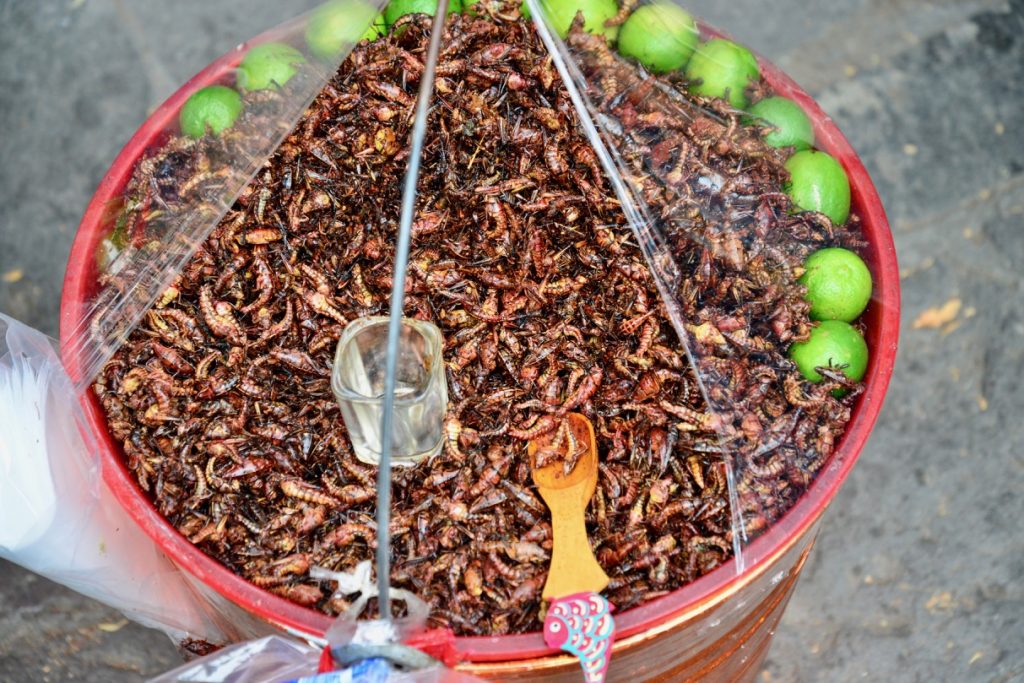 Na volta para o hotel, encontramos várias pessoas vendendo os Chapulines, um espécie de gafanhotos que são coletados no campo nessa época do ano e que são fritados e comidos pelos mexicanos como um petisco precioso. Não provamos, mas a informação é de que têm gosto de camarão.
