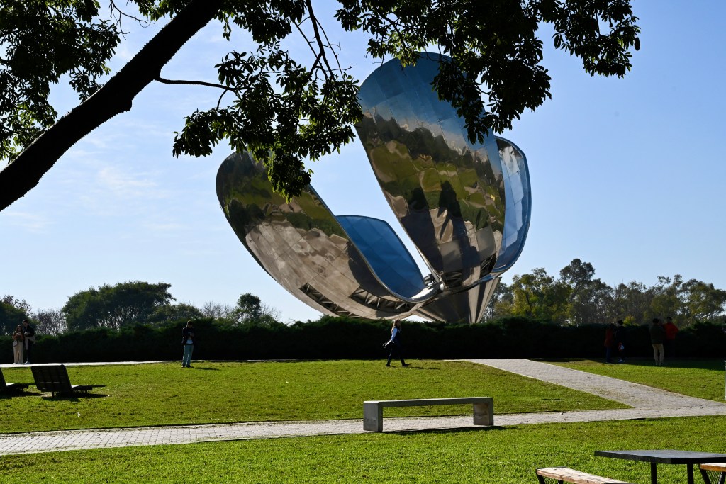 Saímos de La Boca e fomos até a Floralis Genérica, a grande flor de metal criada pelo arquiteto Eduardo Catalano e dado de presente à Buenos Aires. A grande flor de aço e alumínio possui 20 metros de altura e pesa 18 toneladas. O seu nome significa flores e homenageia todas as flores do mundo. A flor se movimenta ao longo do dia. Se abre às 8 da manhã e fecha ao anoitecer.
