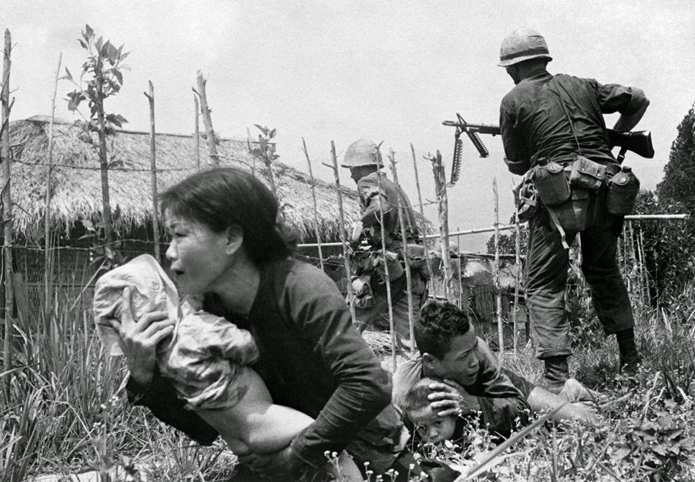 Os bombardeios de napalm tornaram-se um dos símbolos mais sombrios da Guerra do Vietnã. O napalm, uma substância incendiária altamente adesiva, era lançado em grande escala sobre vilarejos e florestas, provocando incêndios devastadores e queimaduras fatais. Seu uso indiscriminado causou inúmeras mortes de civis e uma destruição ambiental irreversível. As imagens dessa brutalidade, amplamente divulgadas pela imprensa internacional, abalaram a opinião pública e aceleraram o desgaste político dos Estados Unidos. Entre elas, destacou-se a icônica fotografia de Nick Ut, que mostra a menina Phan Thi Kim Phuc correndo nua e queimada após um ataque de napalm em 1972 — uma imagem que correu o mundo e se tornou um símbolo do horror da guerra. Essas fotos chocaram o planeta, impulsionaram protestos e contribuíram decisivamente para o aumento da pressão social e política pelo fim do conflito.