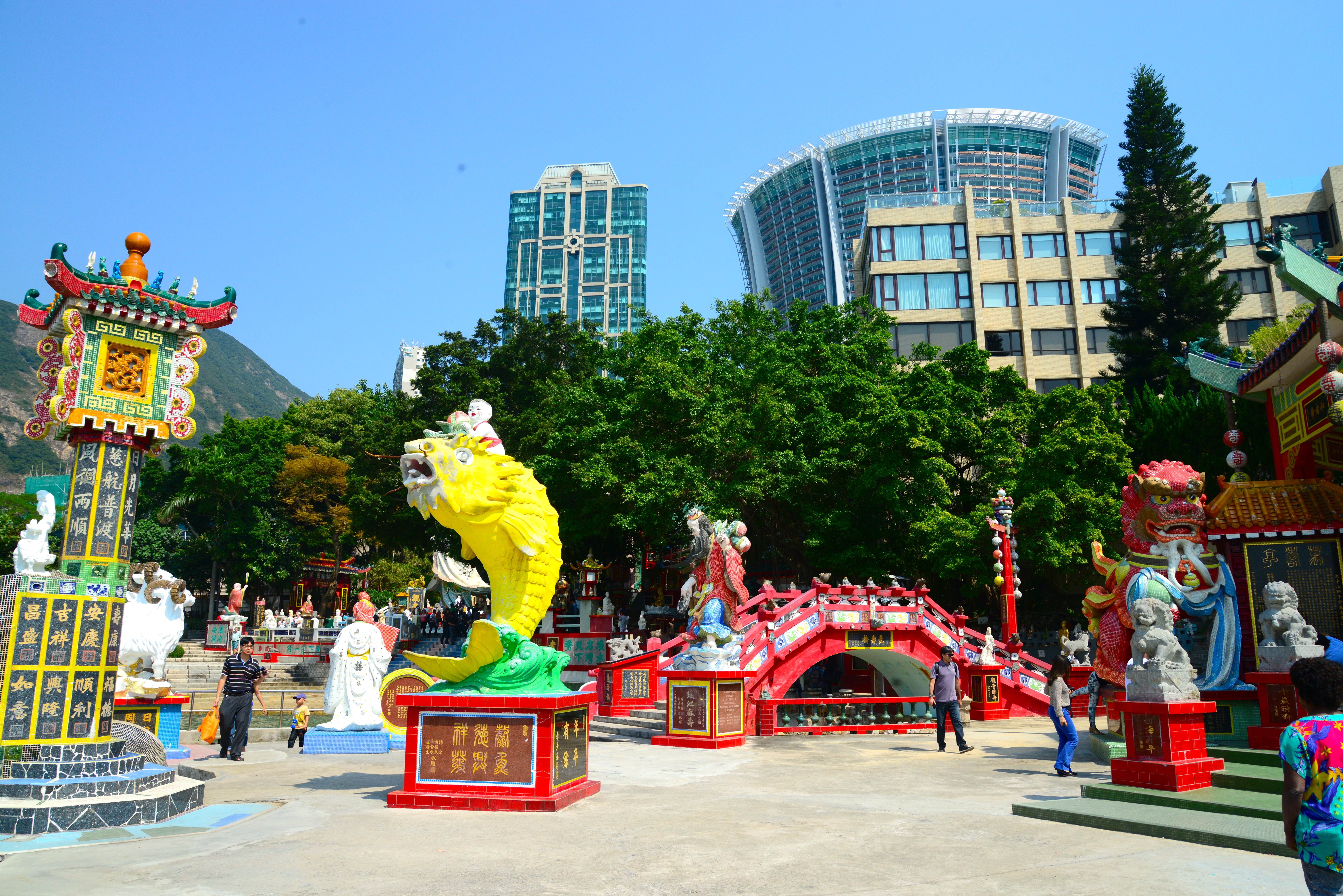 Descemos do Pico Victoria e fomos até a praia da Baía Repulse onde visitamos um maravilhoso templo multireligioso dos pescadores de Hong Kong. O templo é dedicado às religiões budista, confucionista e taoista, ao mesmo tempo.