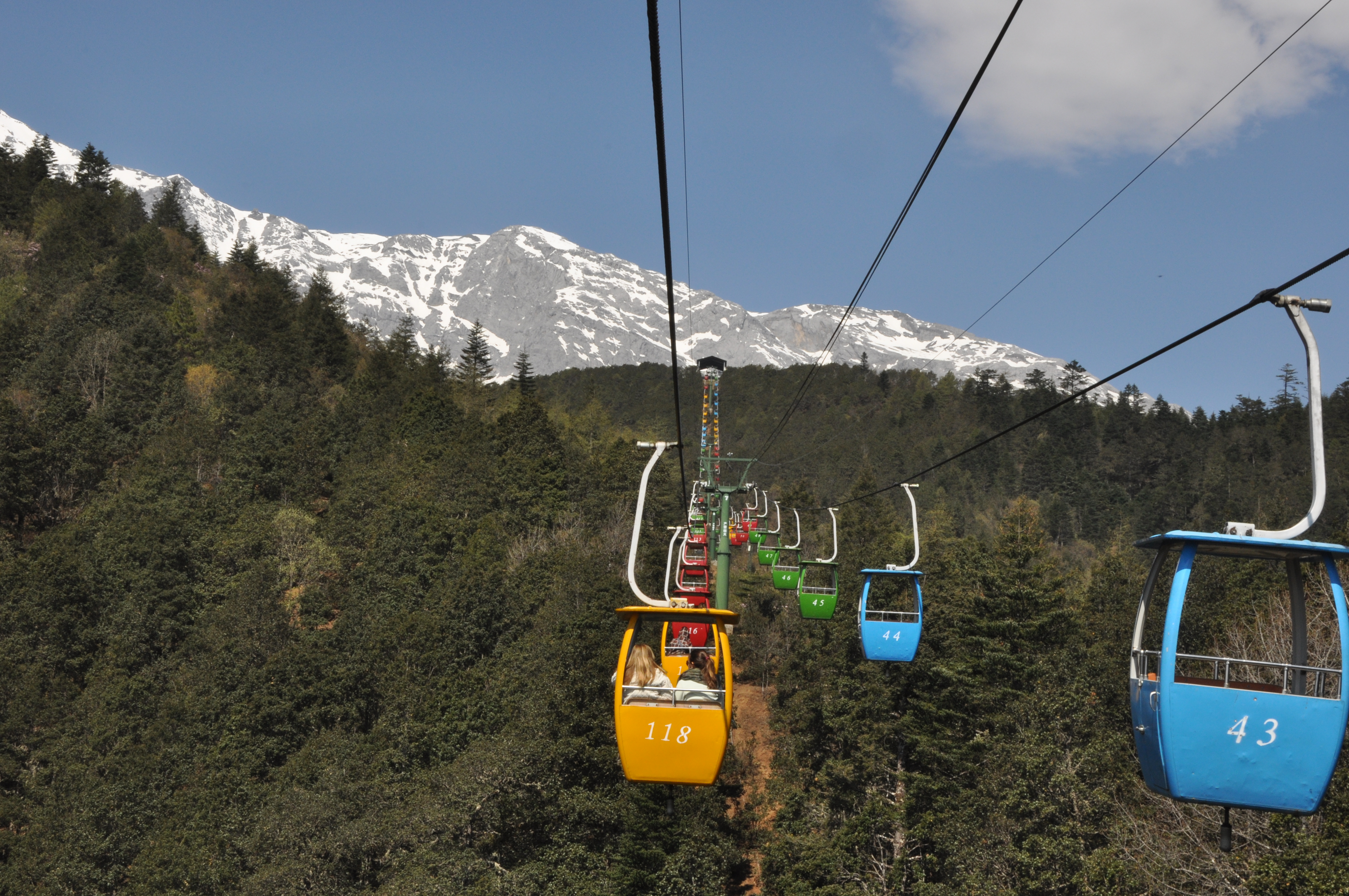 Saímos pela manhã com destino à Montanha Nevada do Tigre de Jade, um grande complexo de montanhas, que fica nos arredores de Lijiang.