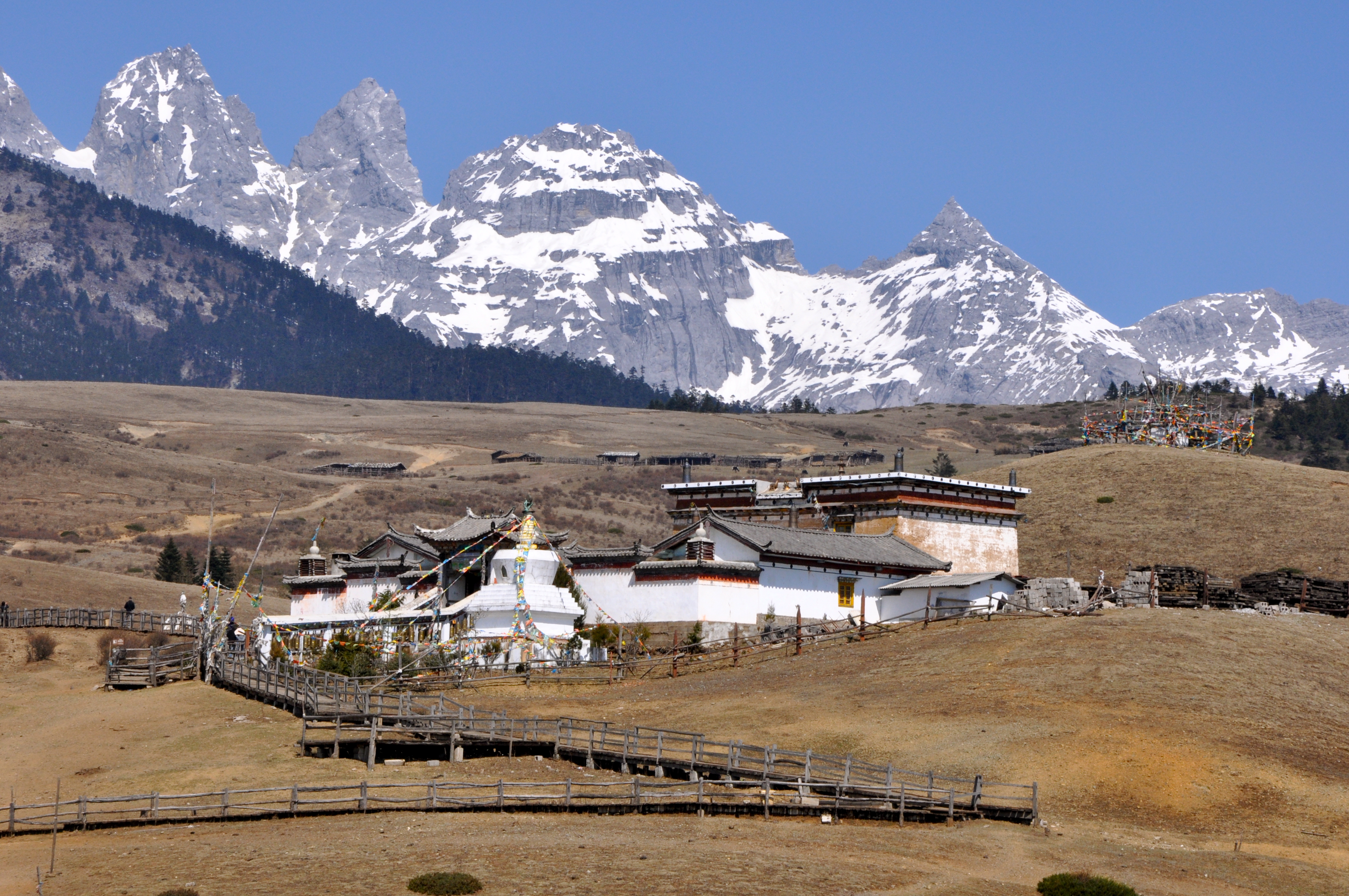 No alto da montanha temos uma vista encantadora. Um mosteiro budista completa e dá um charme especial à paisagem.