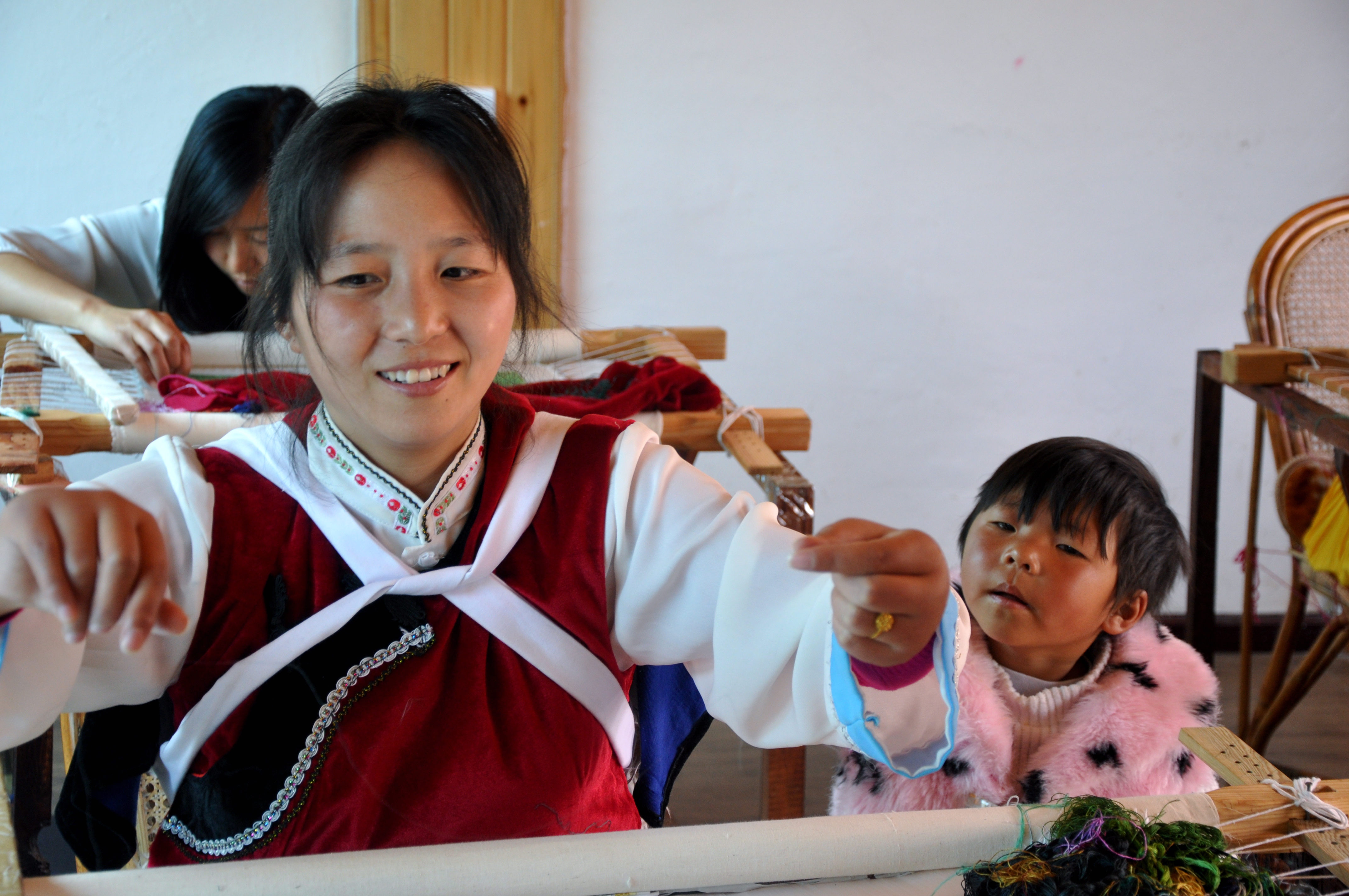 Visitamos uma casa de uma família tradicional Naxi, que faz artesanato com bordados de linha de seda. Fomos muito bem recebidos, aprendemos um pouco sobre essa cultura de uma das mais importantes minorias étnicas da China.