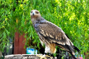 Falcões e cavalos ficam disponíveis e fazem a festa dos turistas.